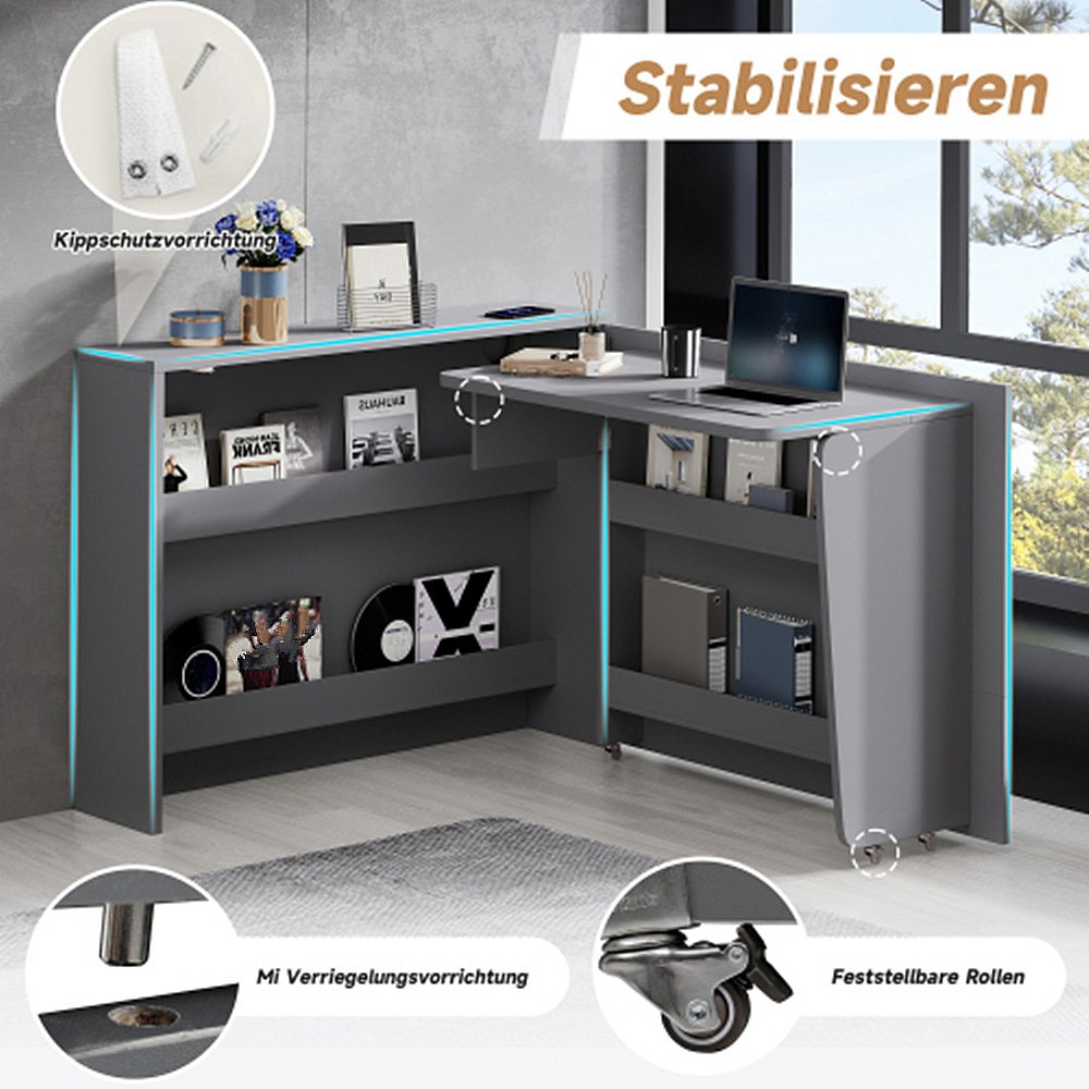 Kommode, Faltbarer Schreibtisch mit Rollen & Wireless Charger–2-in-1 Sideboard & Arbeitsplatz,Tischfläche, mit Regal