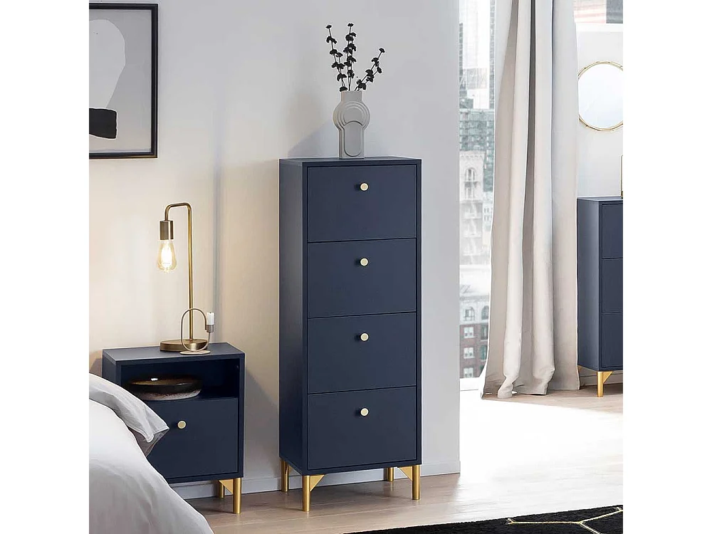 Kommode Hochkommode in Dunkelblau mit vier Schubladen