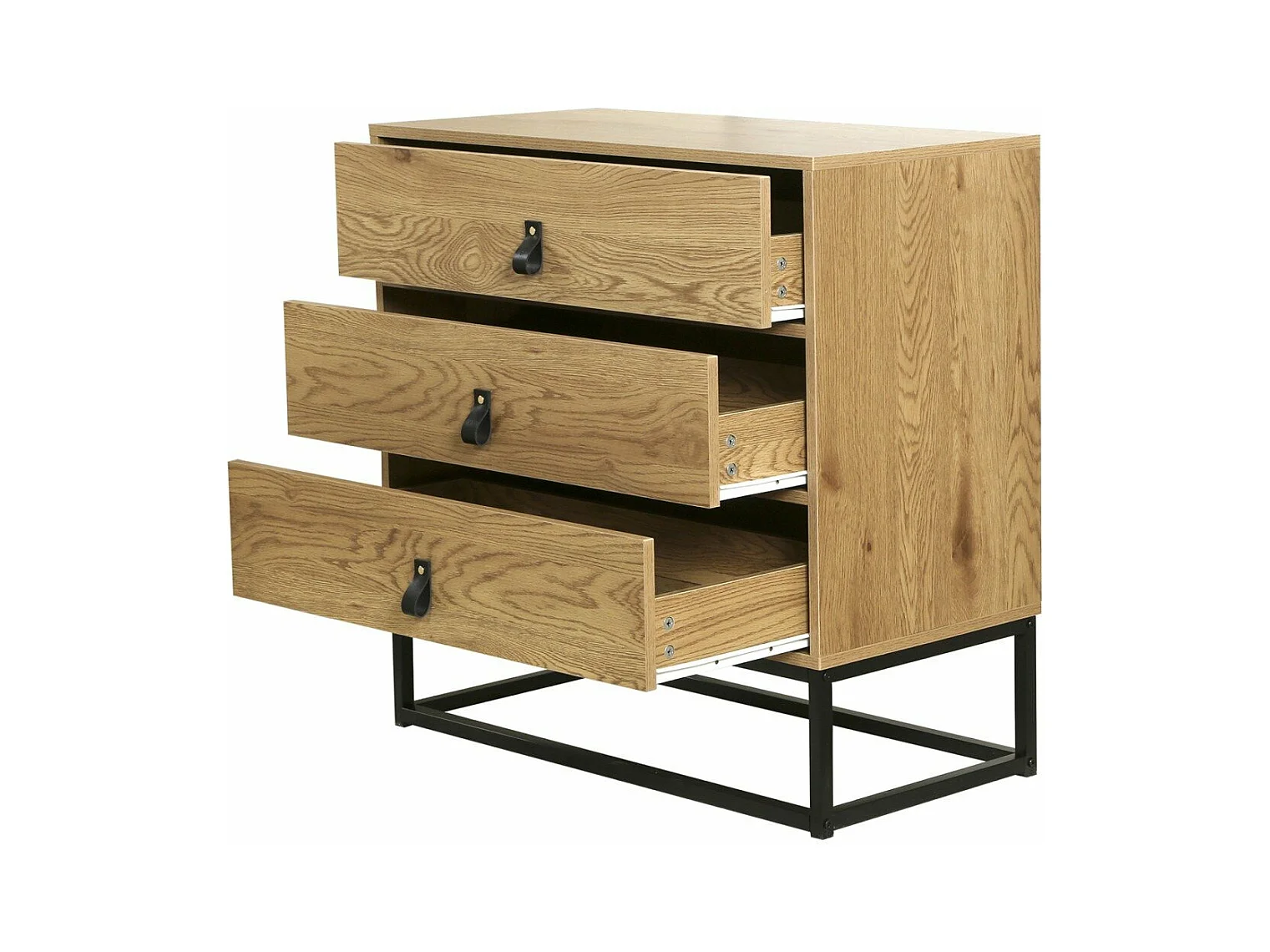 Kommode in Eiche-Dekor mit 3 Schubladen und Metallgestell