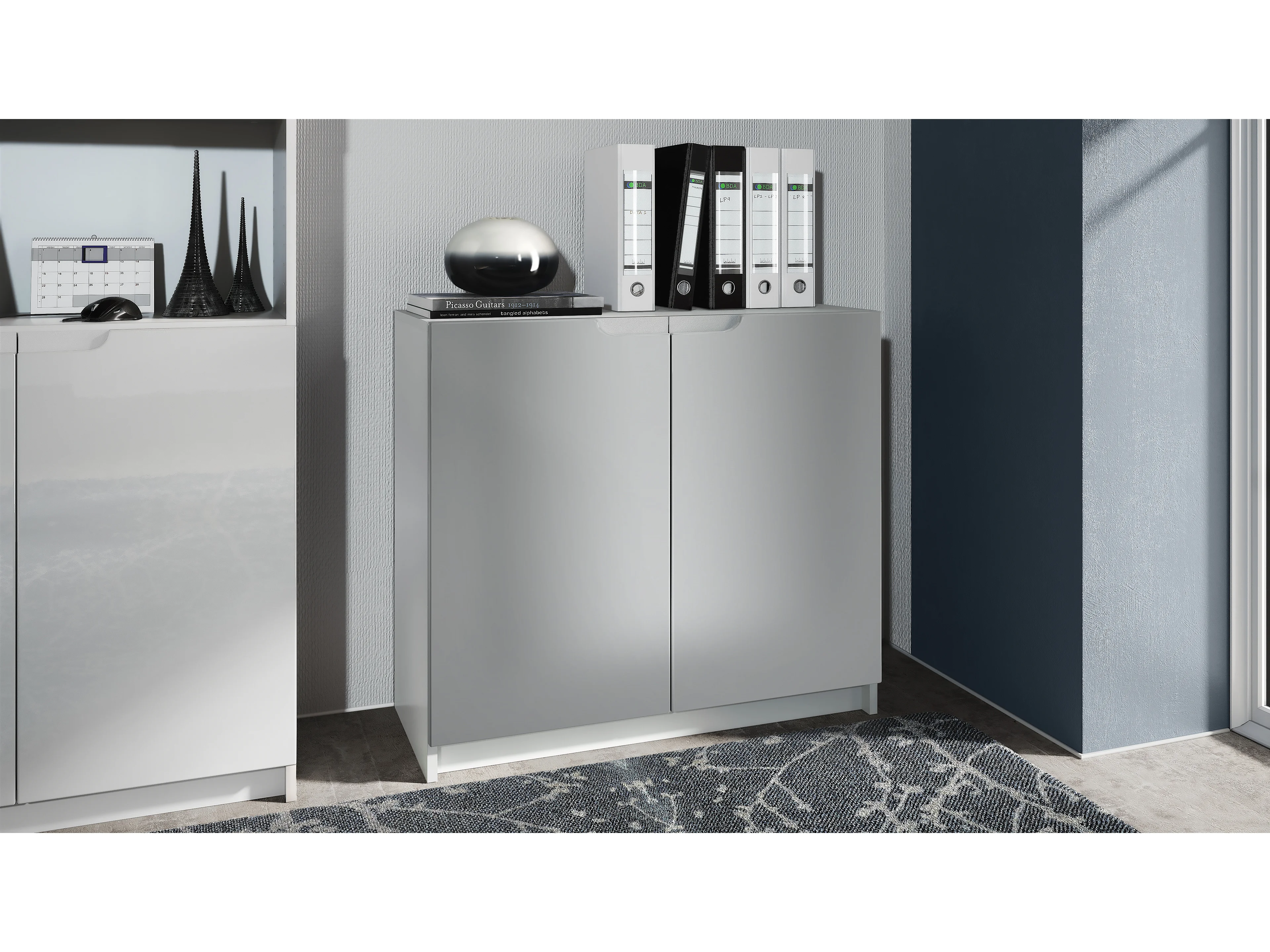 KOMMODE Logan Fronten in Hellgrau Seidenmatt