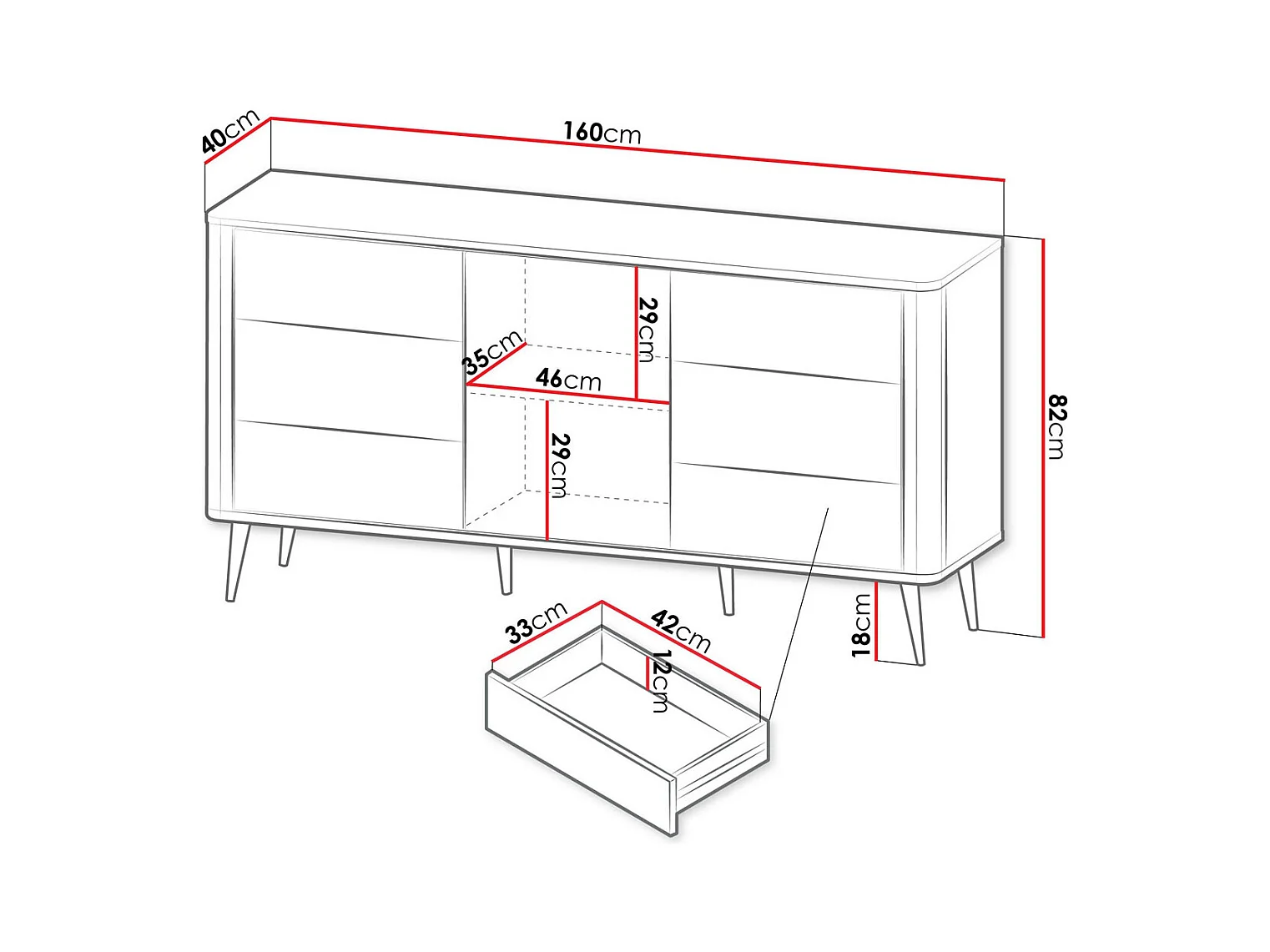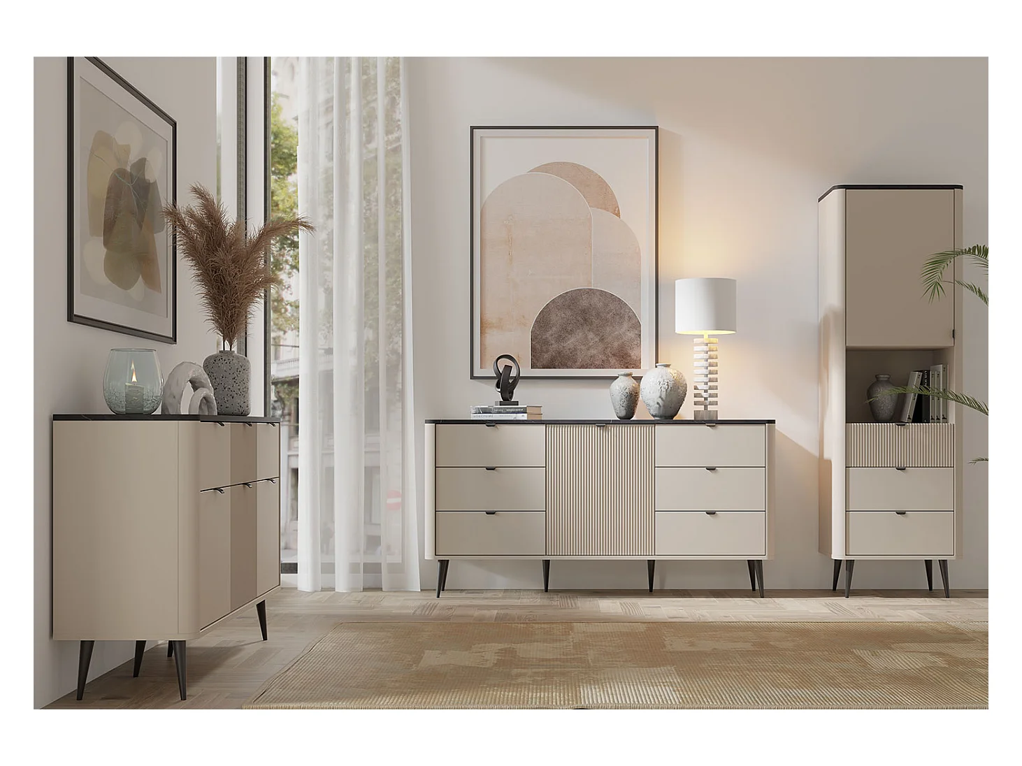 KOMMODE Marly Kaschmir / Graustein 160 / 40 / 82cm