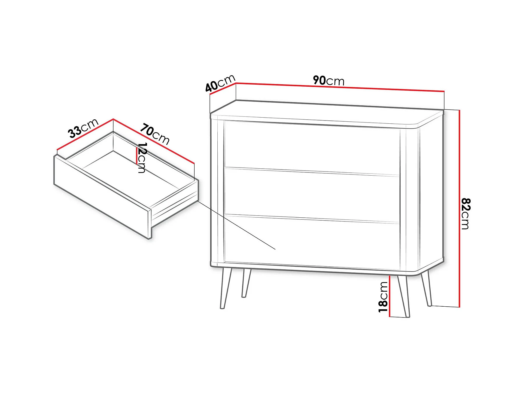 KOMMODE Marly Kaschmir / Walnuss 90 / 40 / 82cm