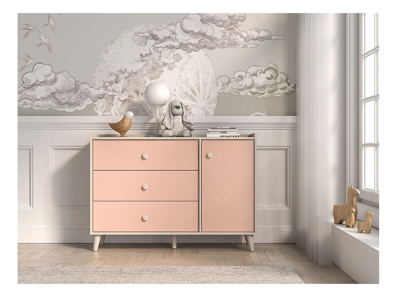 KOMMODE Mevel Wüstensand / Millennial Pink 120 / 40 / 85cm
