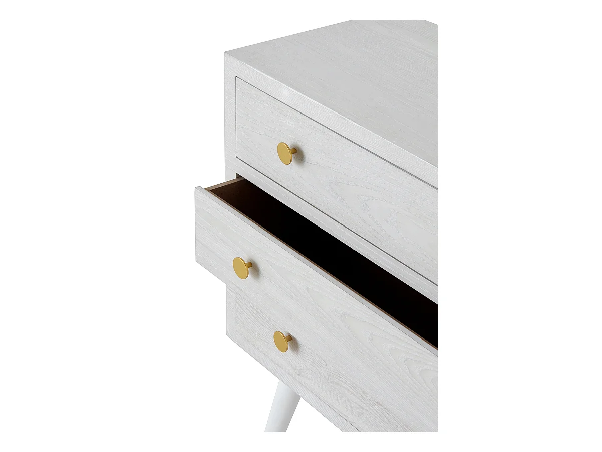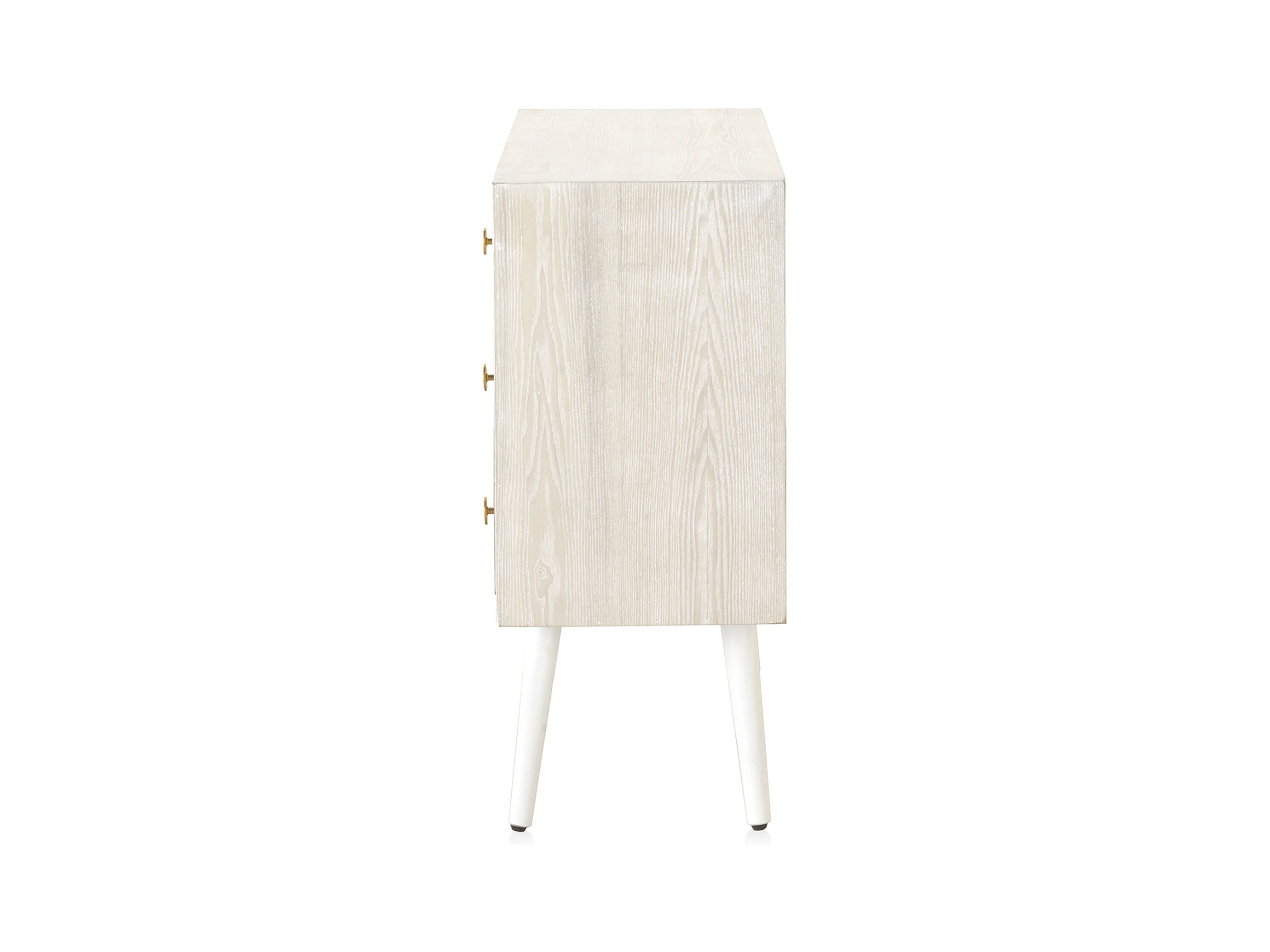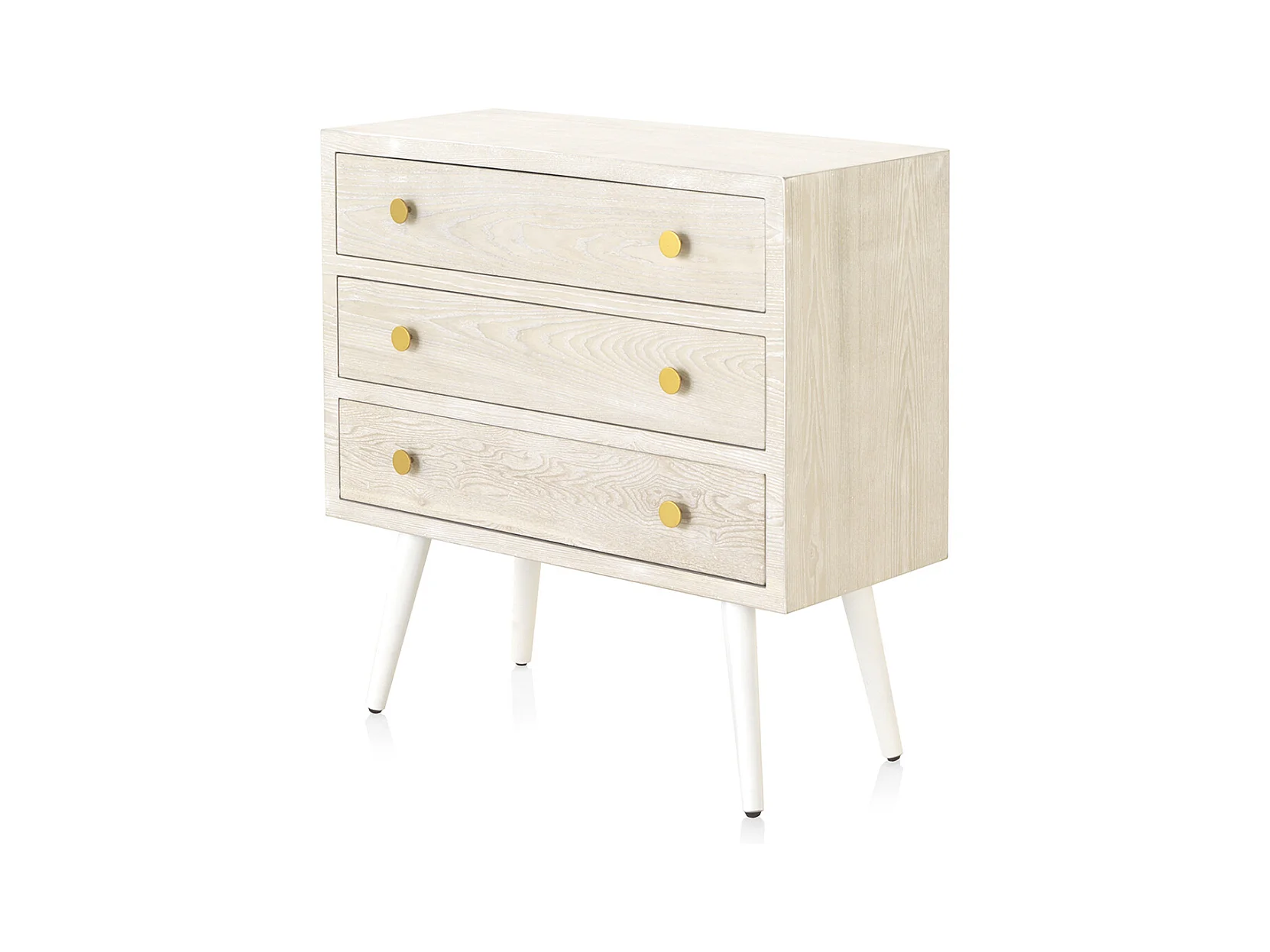 Kommode mit 3 Schubladen aus weißem Eschenholzfurnier, weiß patiniert