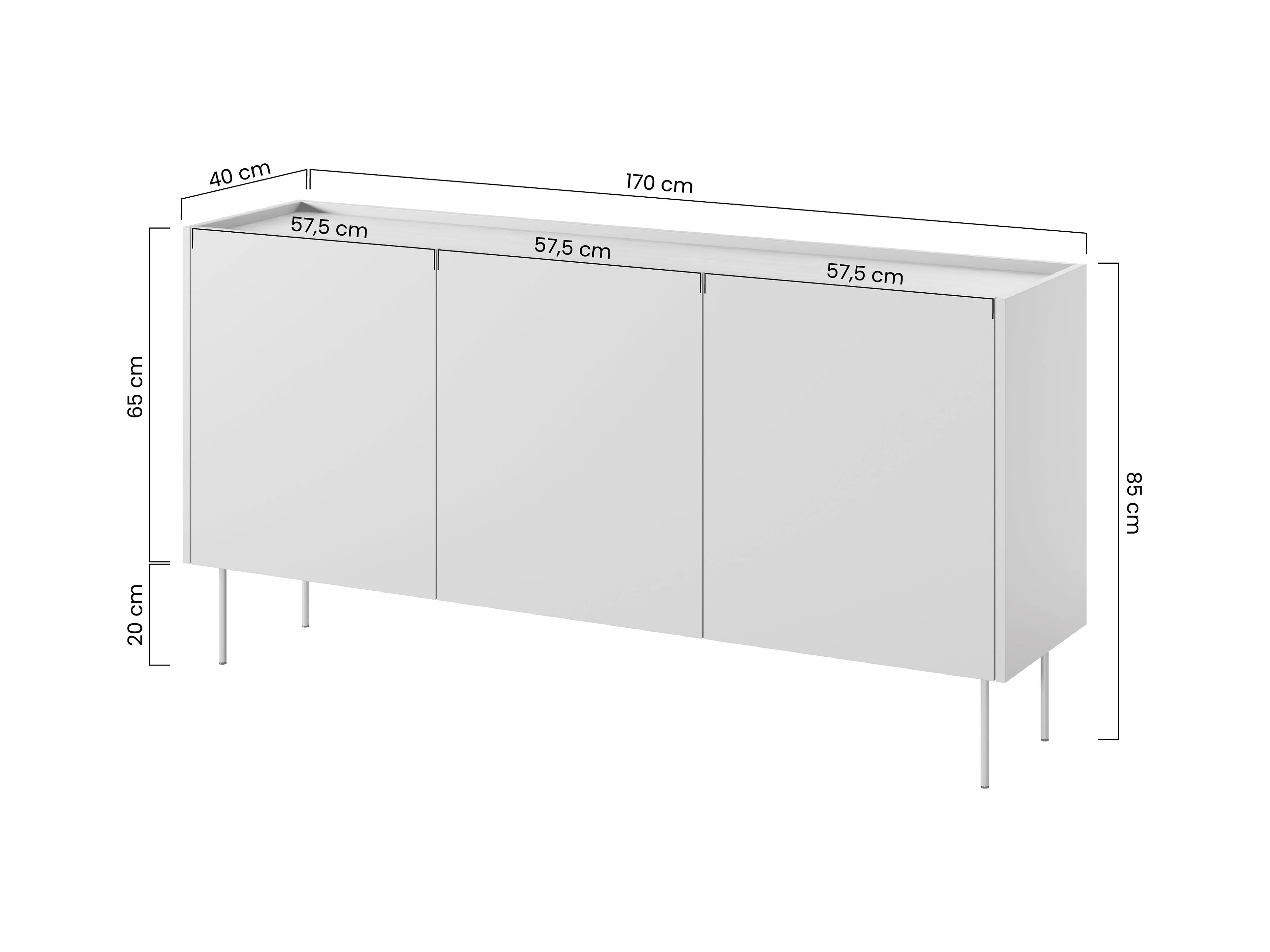 Kommode mit 3 Türen und 2 Schubladen mit Metallfuß 170x85 cm