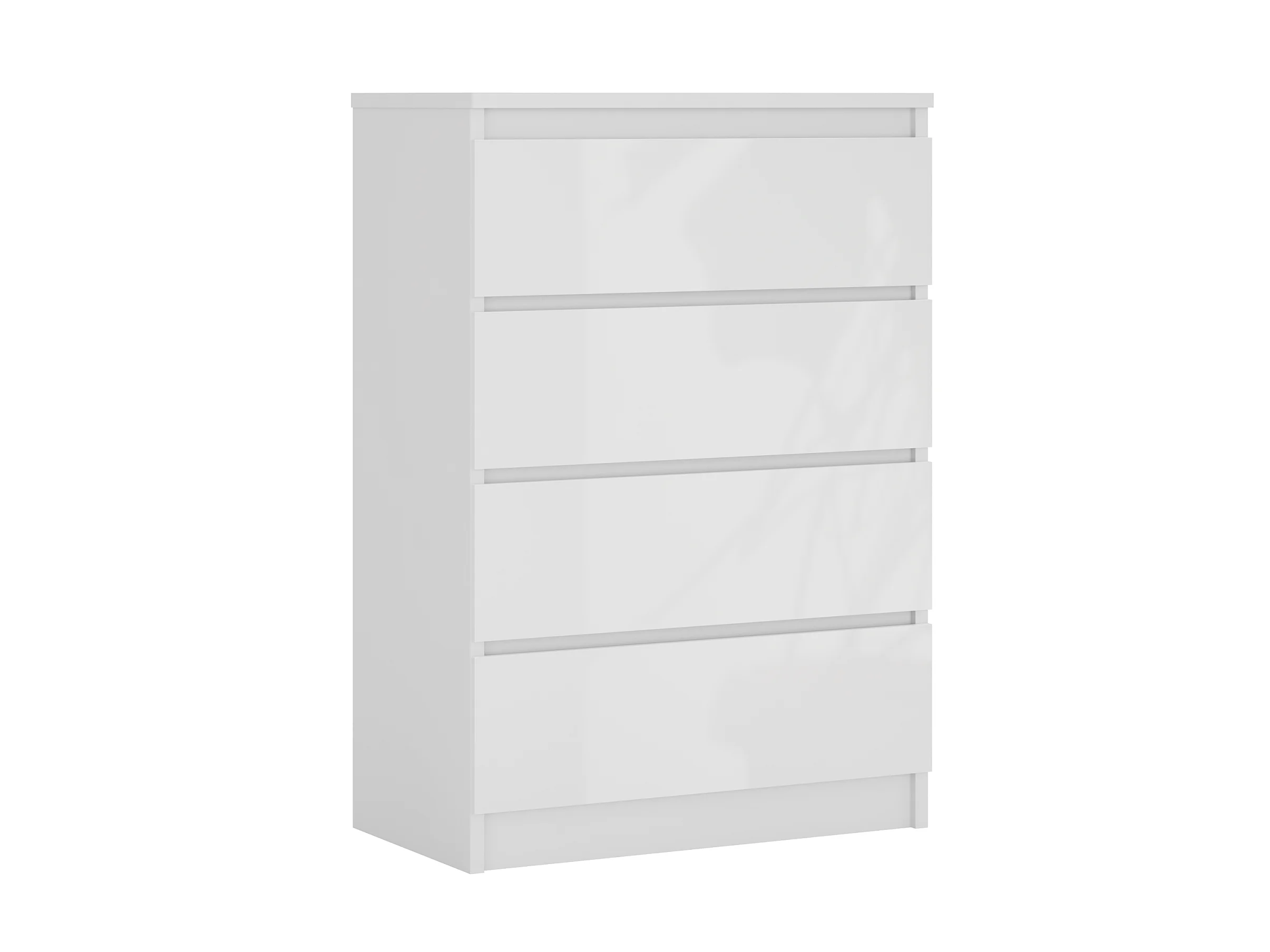 Kommode mit 4 Schubladen: Mattweiß / Hochglanzweiß, 70 x 39 x 101 cm