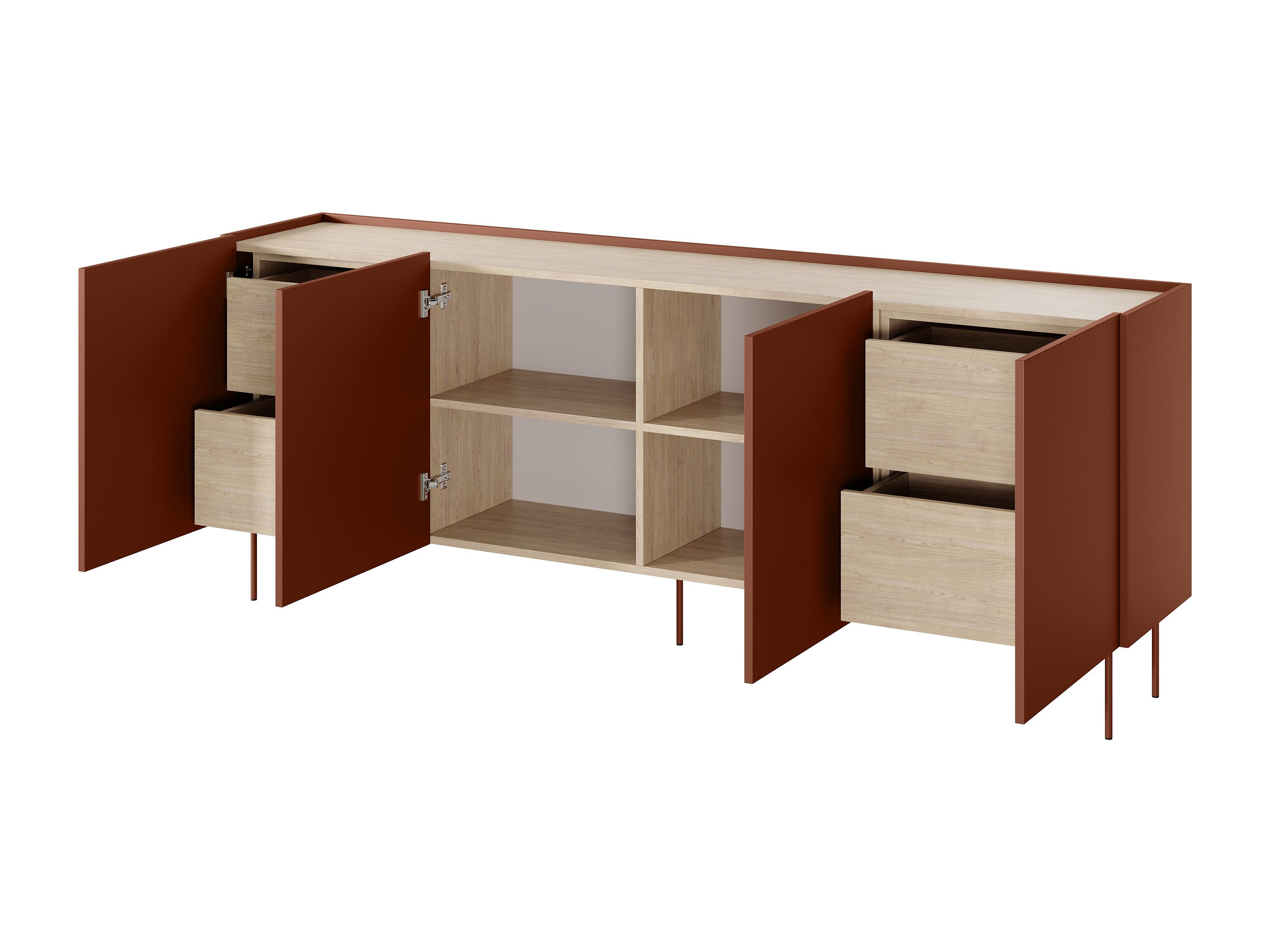 Kommode mit 4 Türen und 4 Schubladen mit Metallfuß 220x85 cm