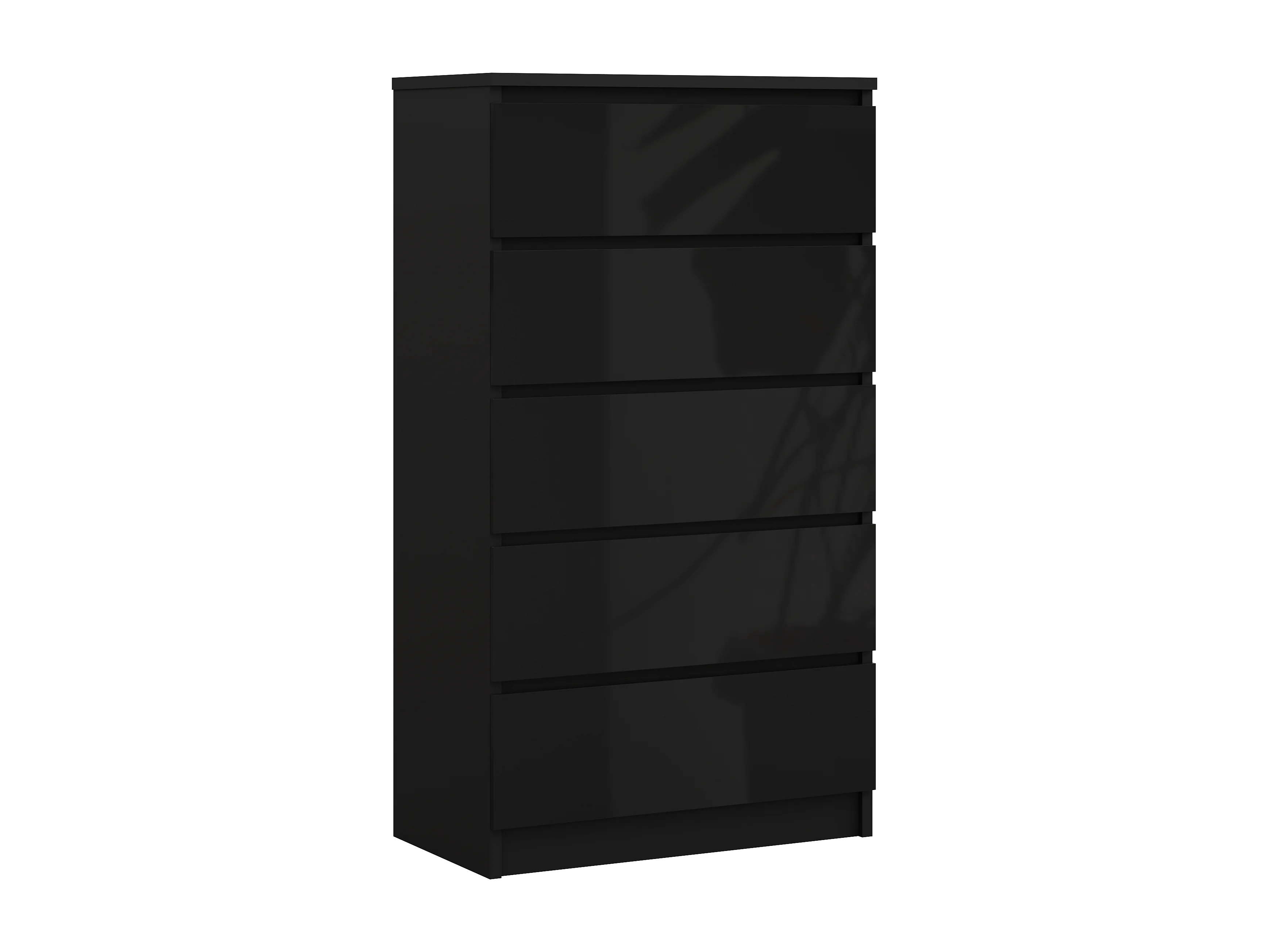 Kommode mit 5 Schubladen, mattschwarz / glänzend schwarz, 70 x 39 x 125 cm