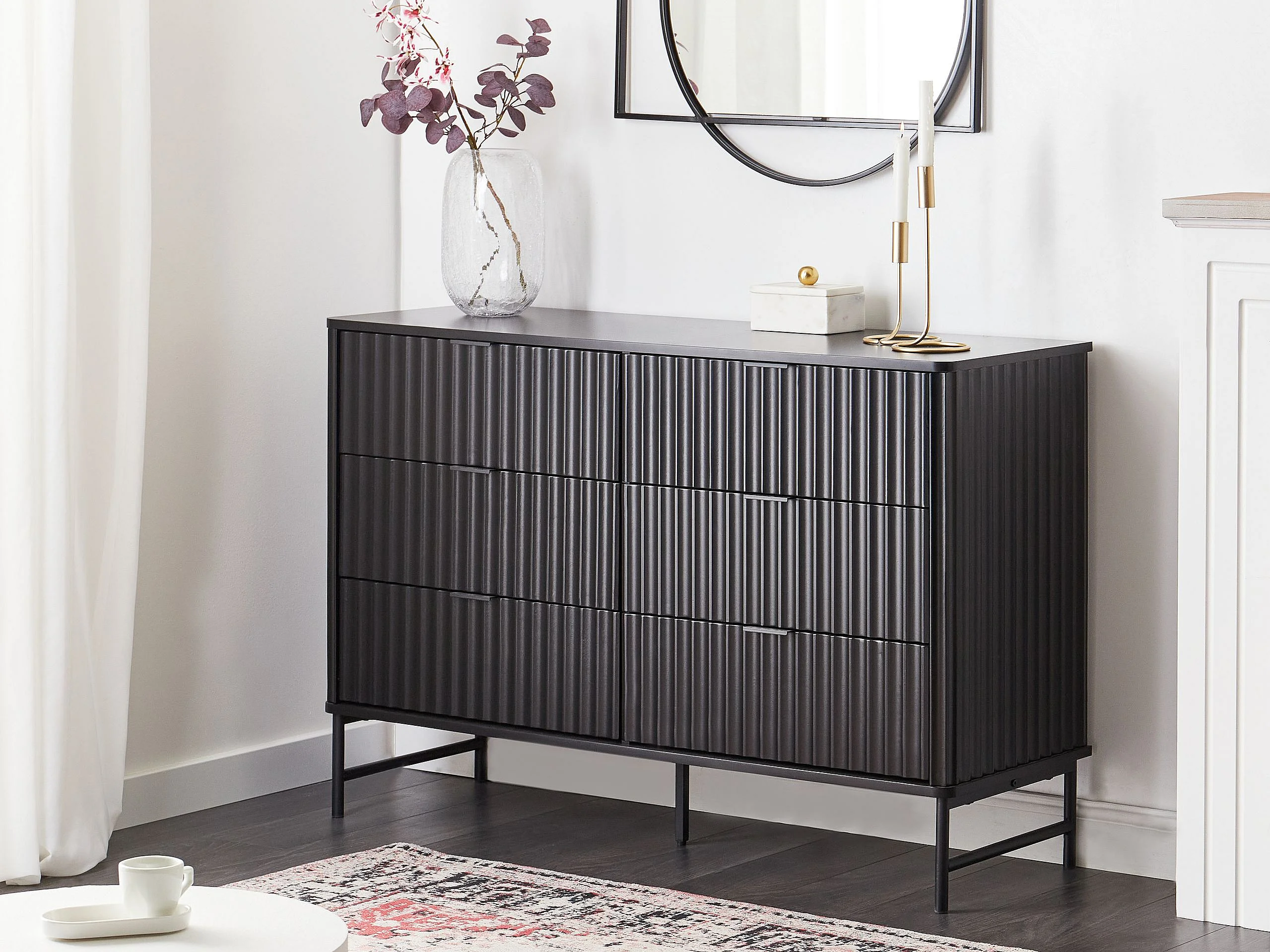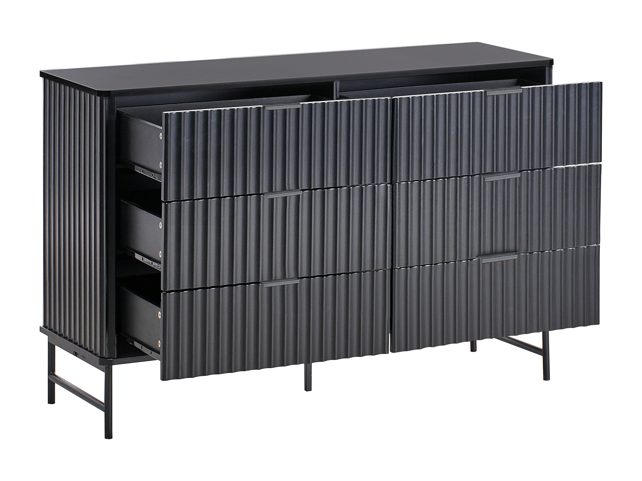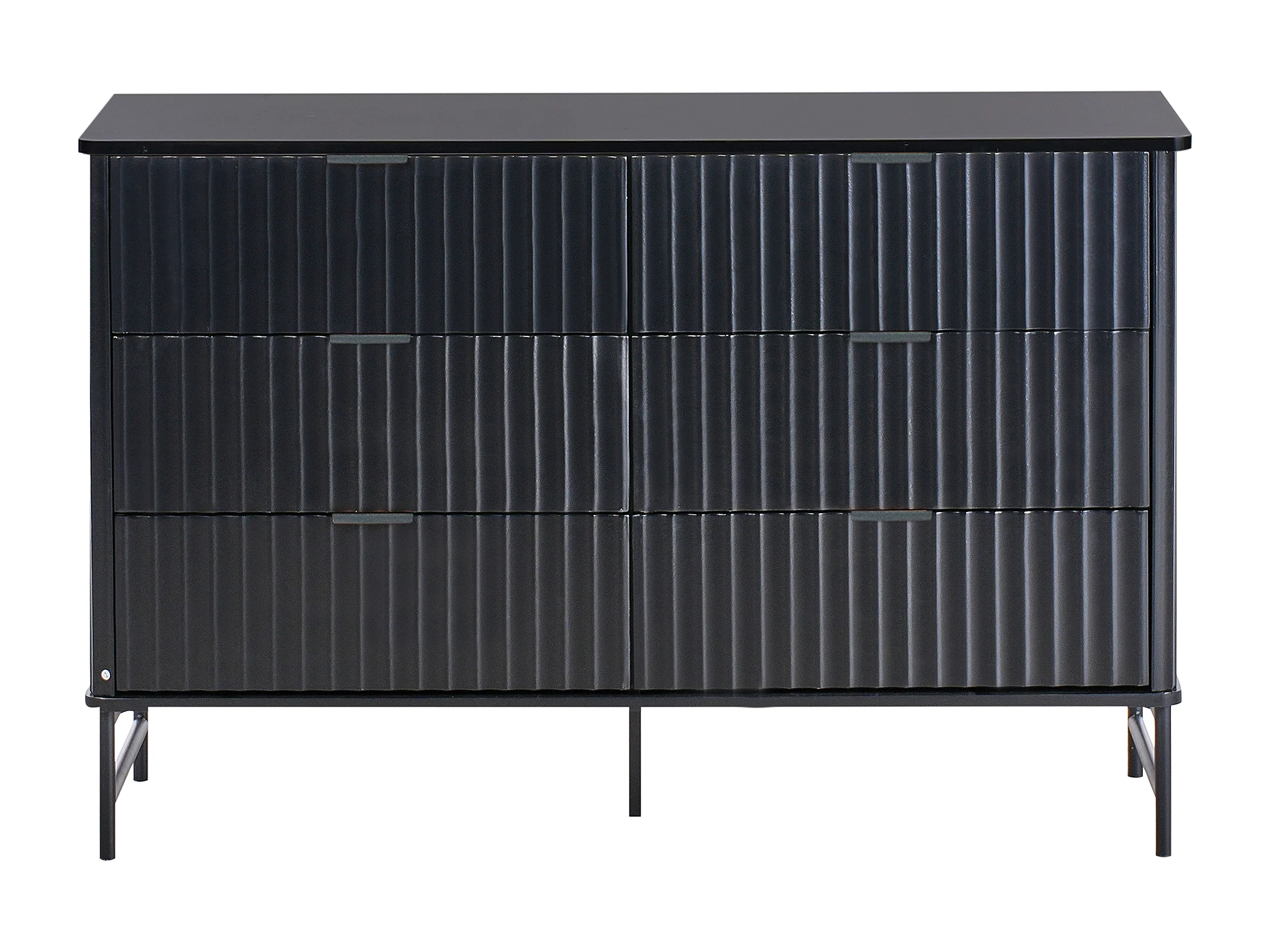 Kommode mit 6 Schubladen und geriffelter Front Modernes Design MDF Metallbeine Schwarz Glastonbury