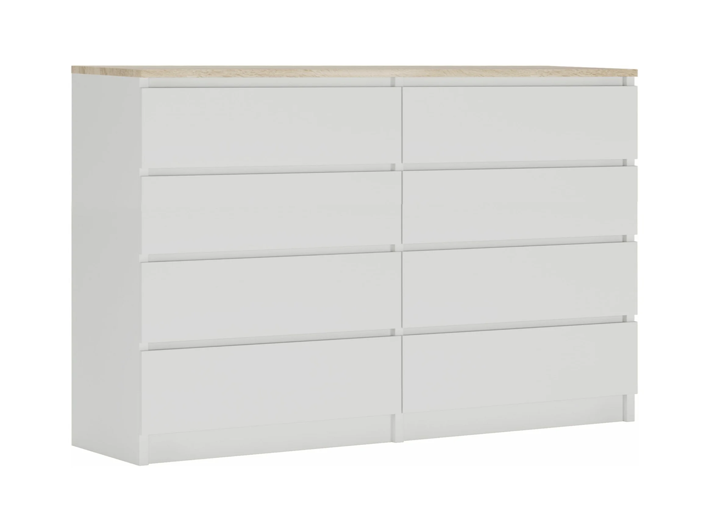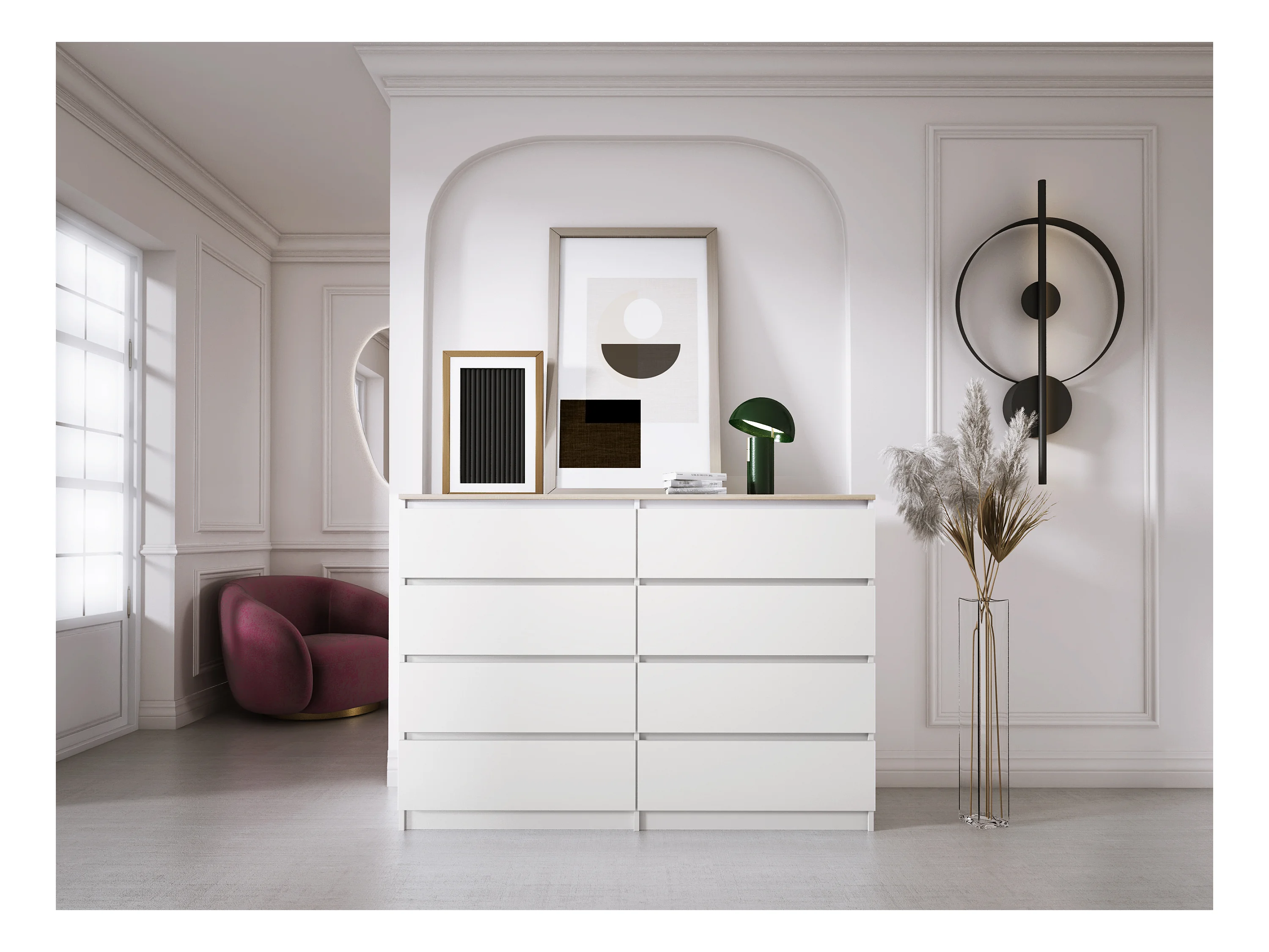 Kommode mit 8 Schubladen: Mattweiß / Oberfläche aus Sonoma-Eiche, 138 x 101 x 39 cm