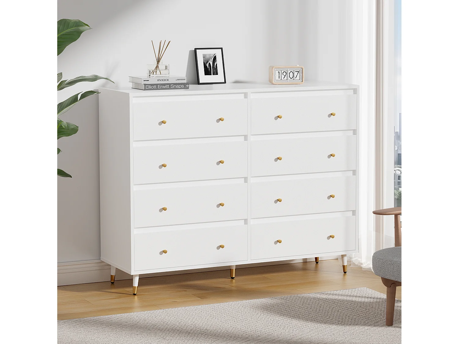 Kommode mit 8 Schubladen - Modernes Massivholz Sideboard für das Schlafzimmer - Wohnzimmer - Flur und Büro - Viele Farbvarianten und Stauraum