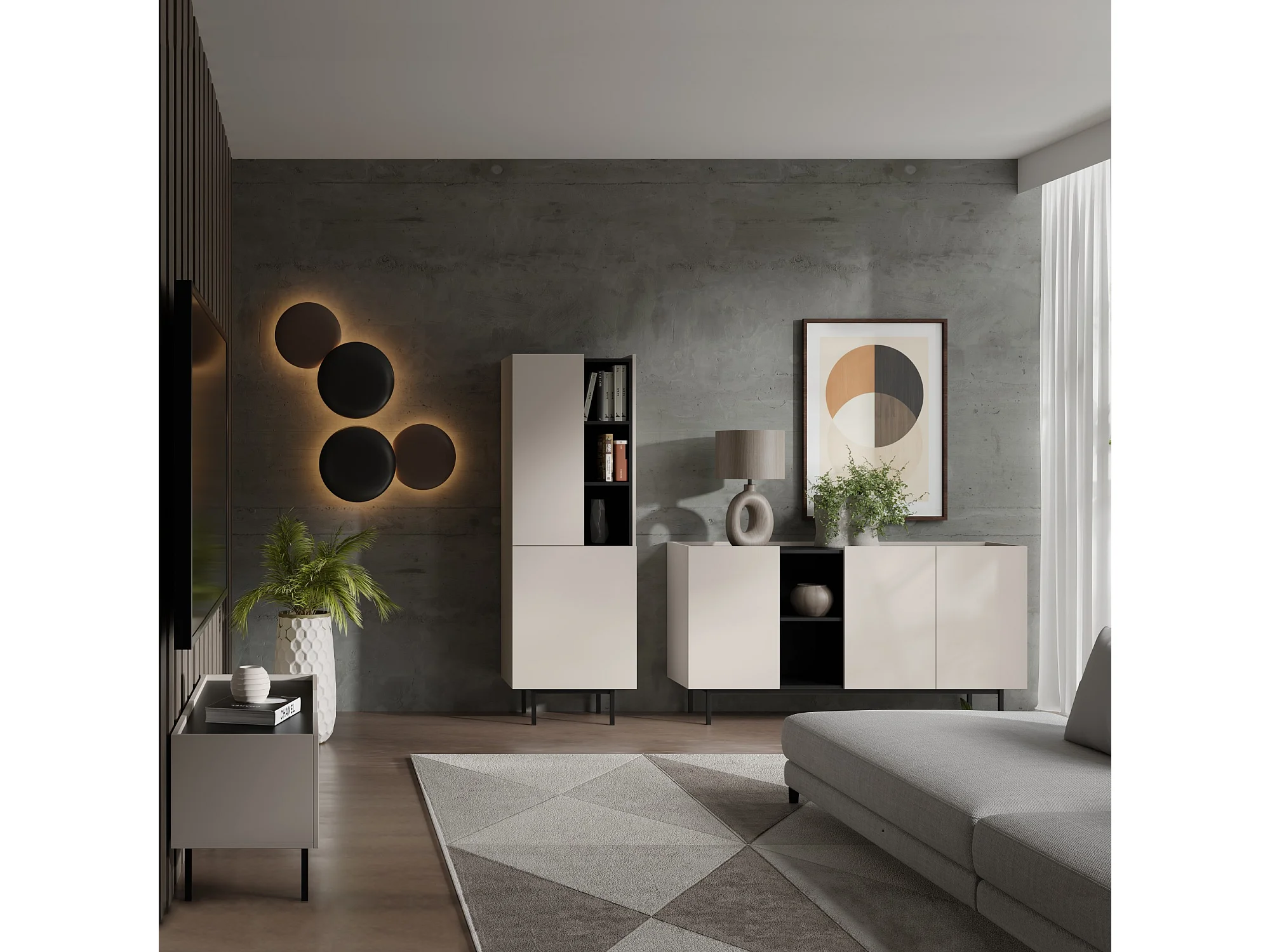 Kommode mit Klapptüren Noel 3D 165 Kaschmir / Schwarz