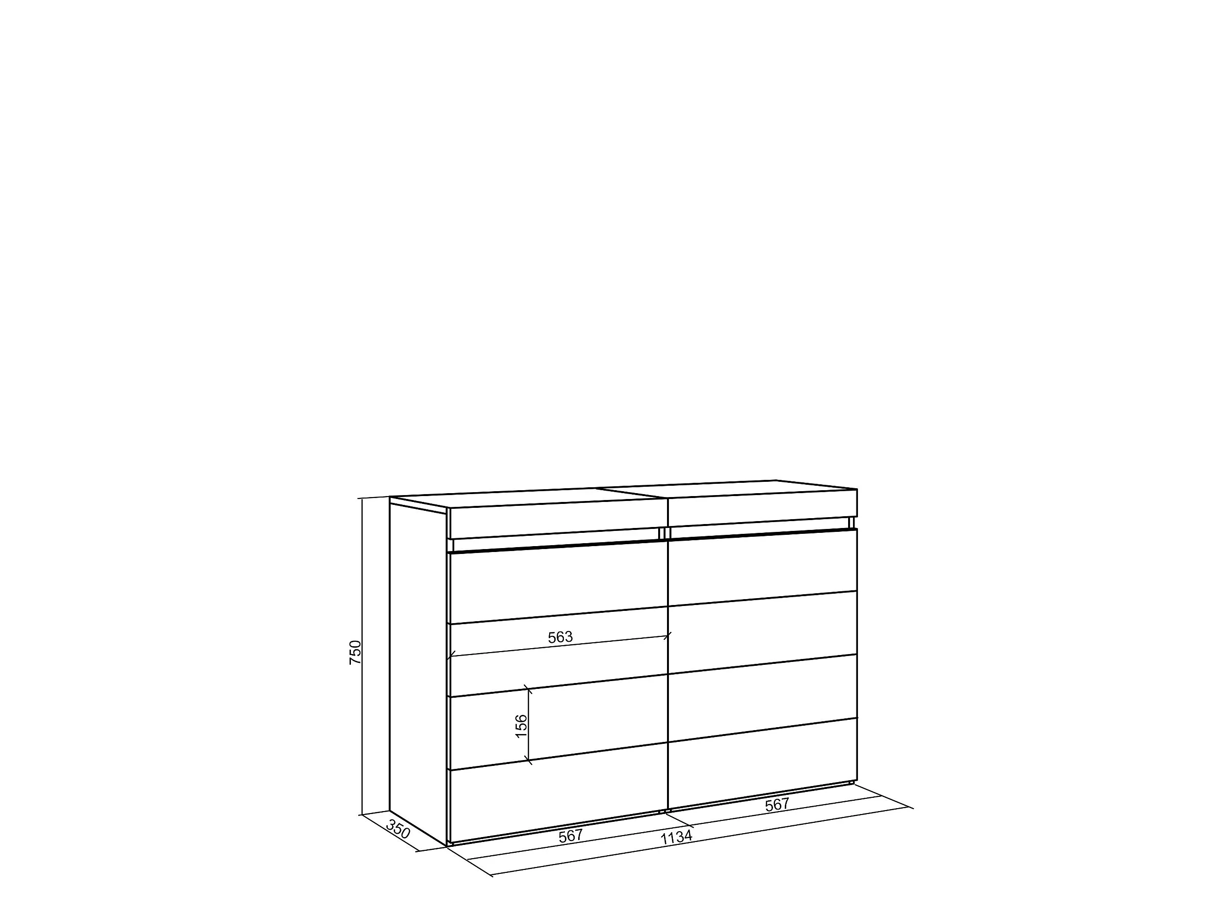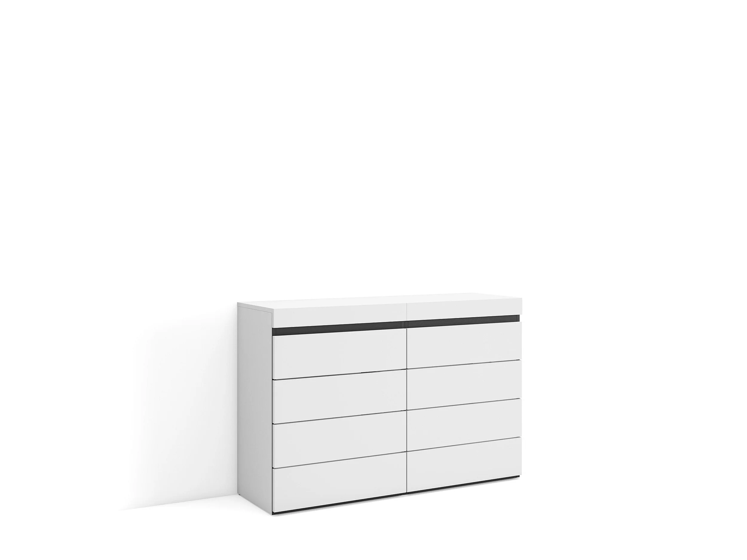 Kommode mit Schubladen, 114x35x75cm, Für Schlafzimmer, Sideboard, Schrank, Weiß und Schwarz