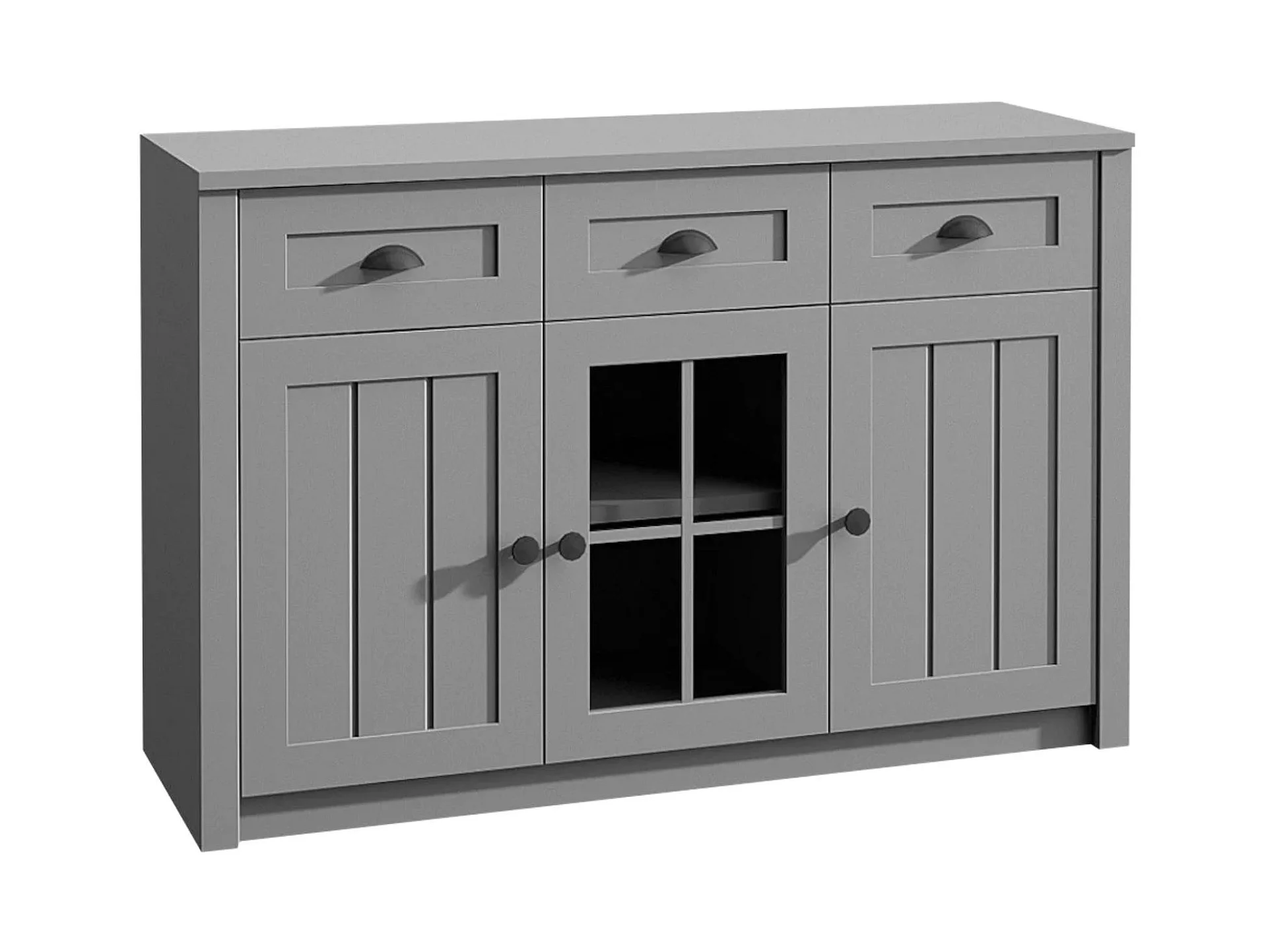 Kommode mit Schubladen und Glastüren - grau - LEMAS
