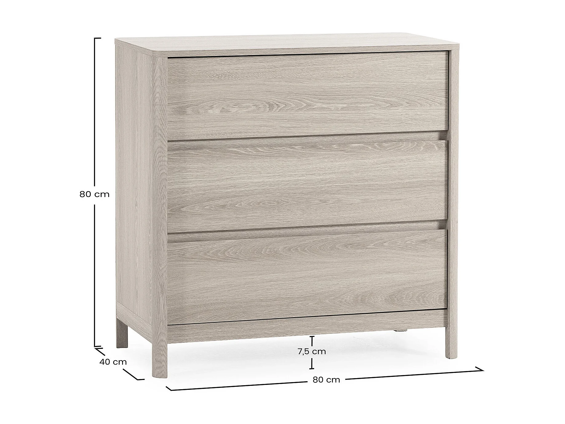 Kommode Nassau 3 schubladen Eichenfarbe