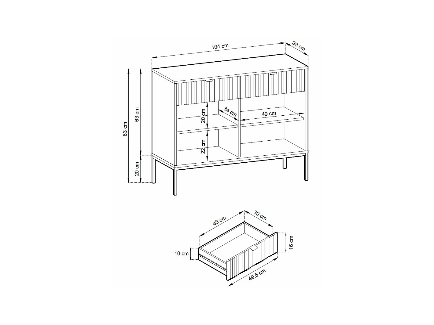 KOMMODE Nova Weiß / Schwarz 104 / 39 / 83cm