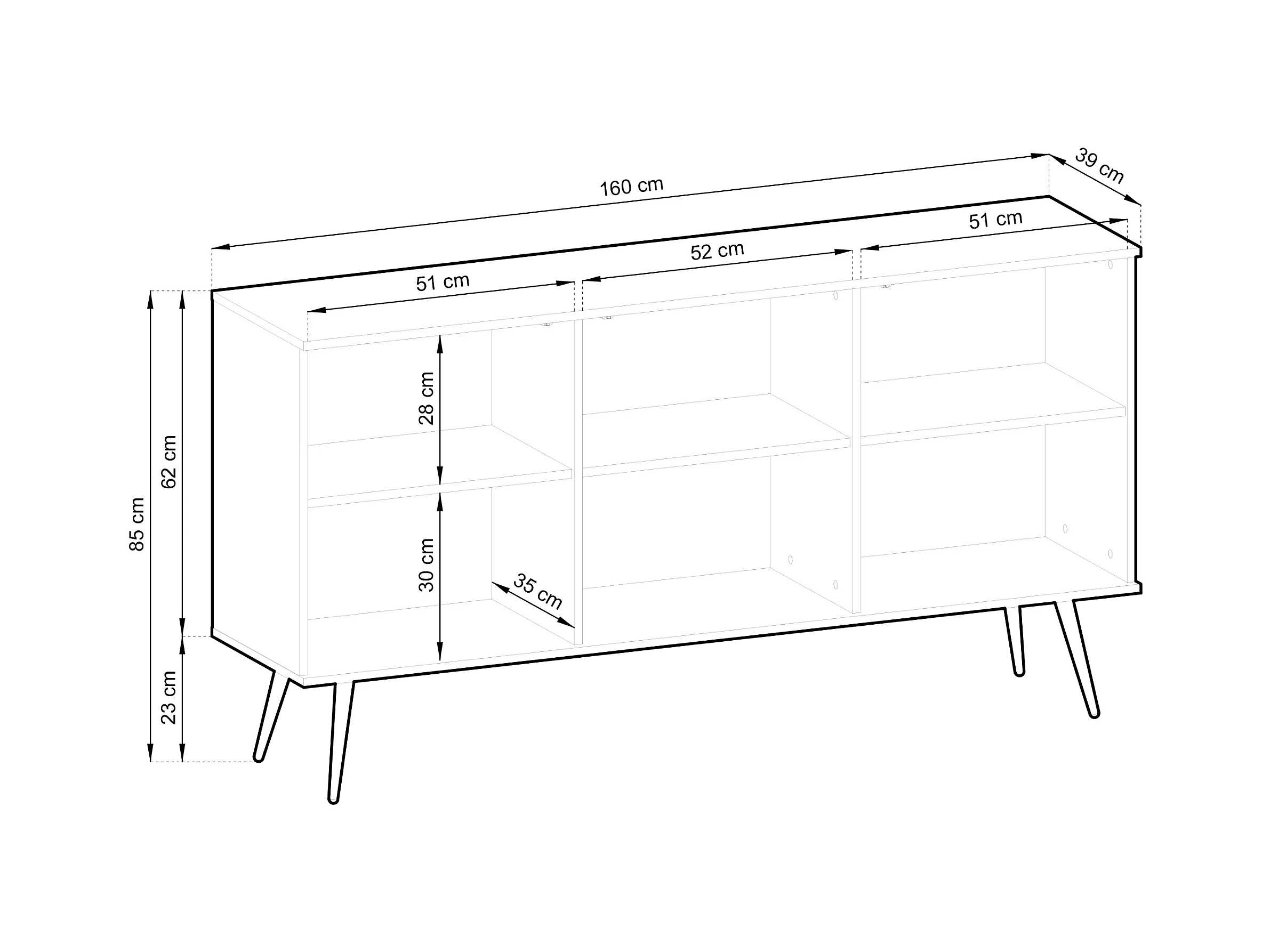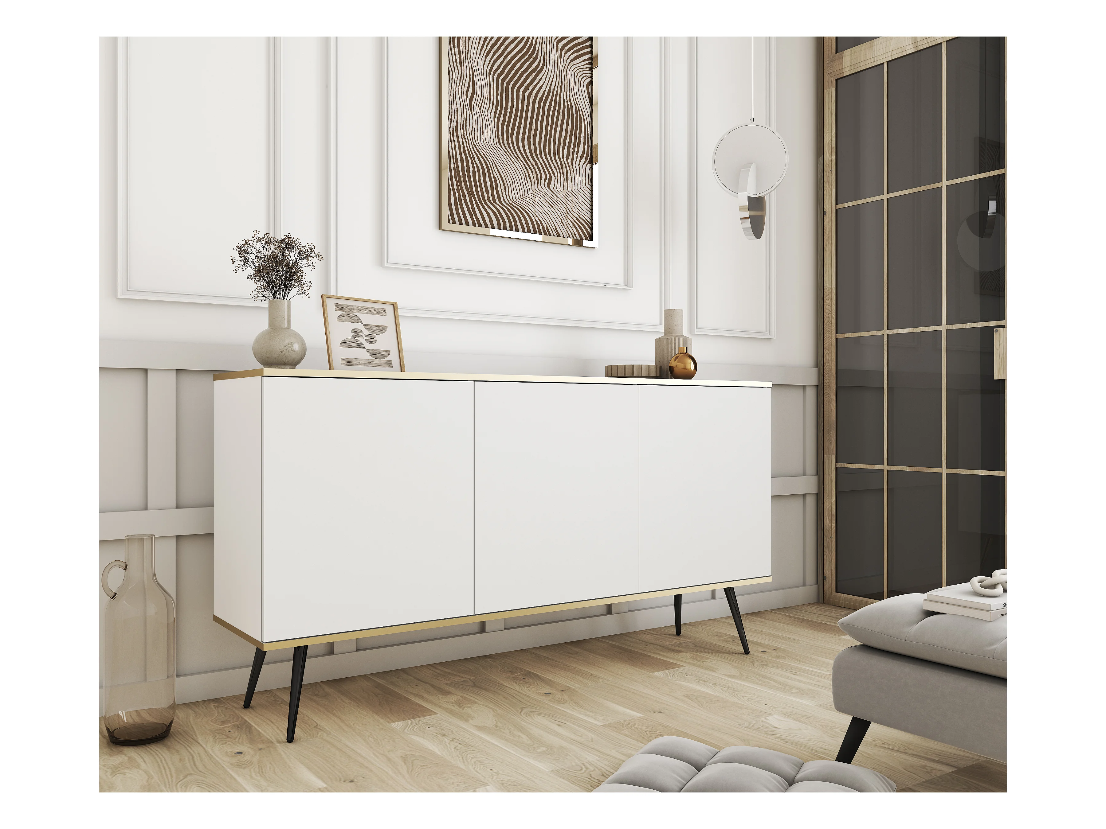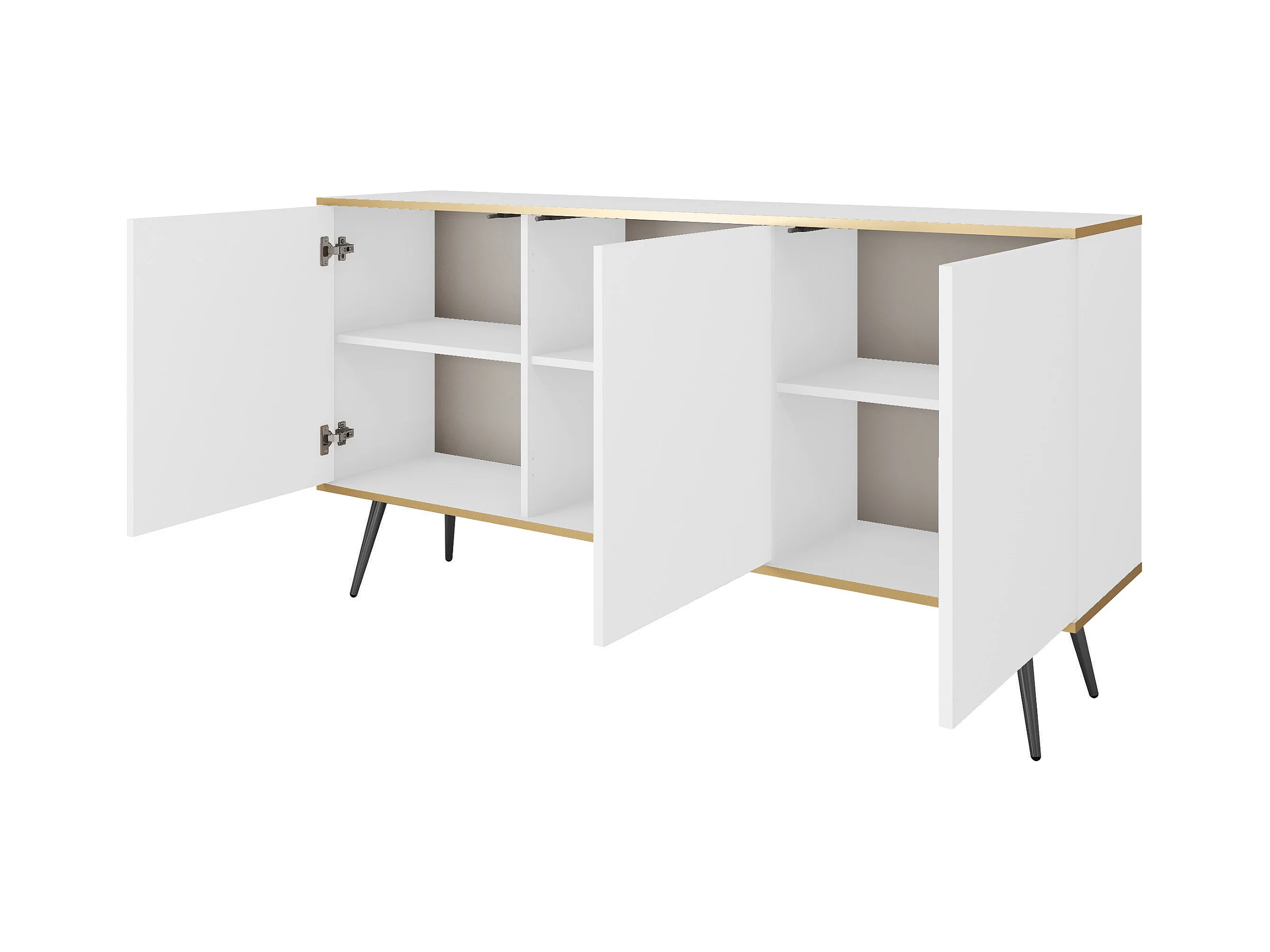 KOMMODE ORO K-160 Modern 160 cm breit weiss, 2 türen, 2 schubladen, push-to-open, metallfüße schwarz 23 cm, laminierte platte 16 mm