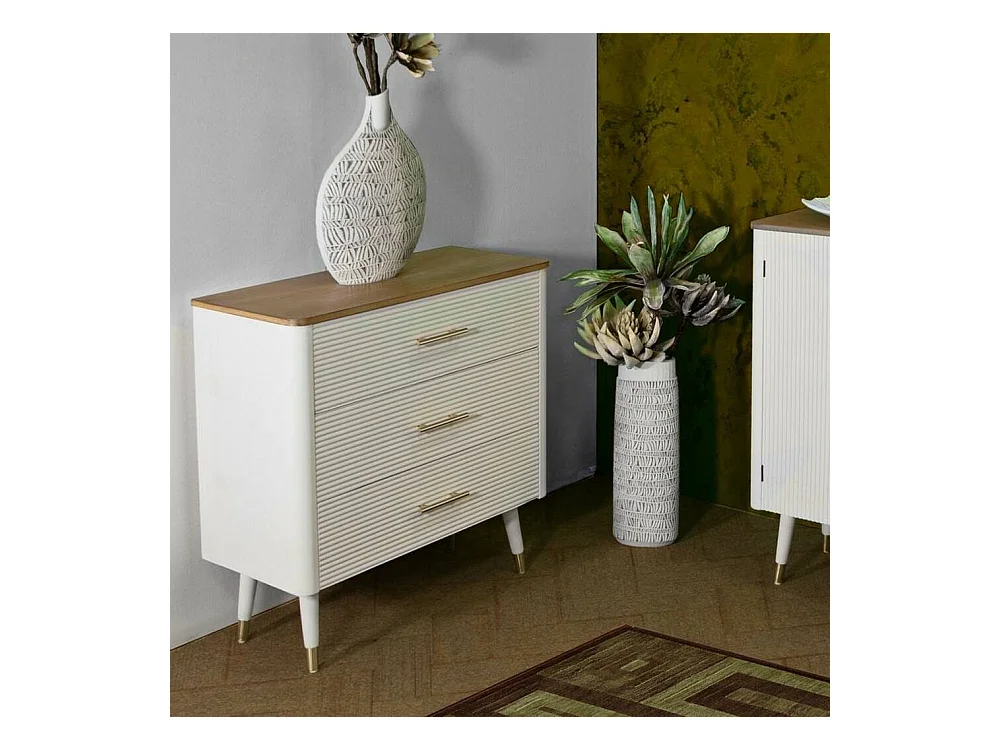 Kommode Phaidone, Mehrzweckkommode, Schlafzimmerkommode, Schrank mit Schubladen, 78x37 h80 cm, Weiß und Braun