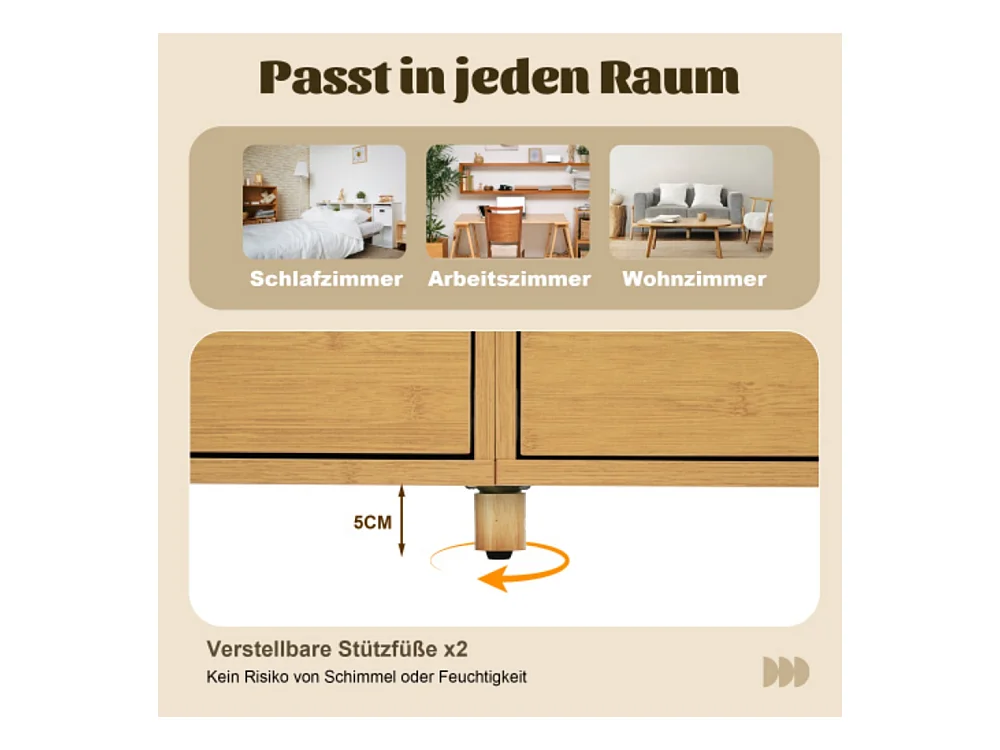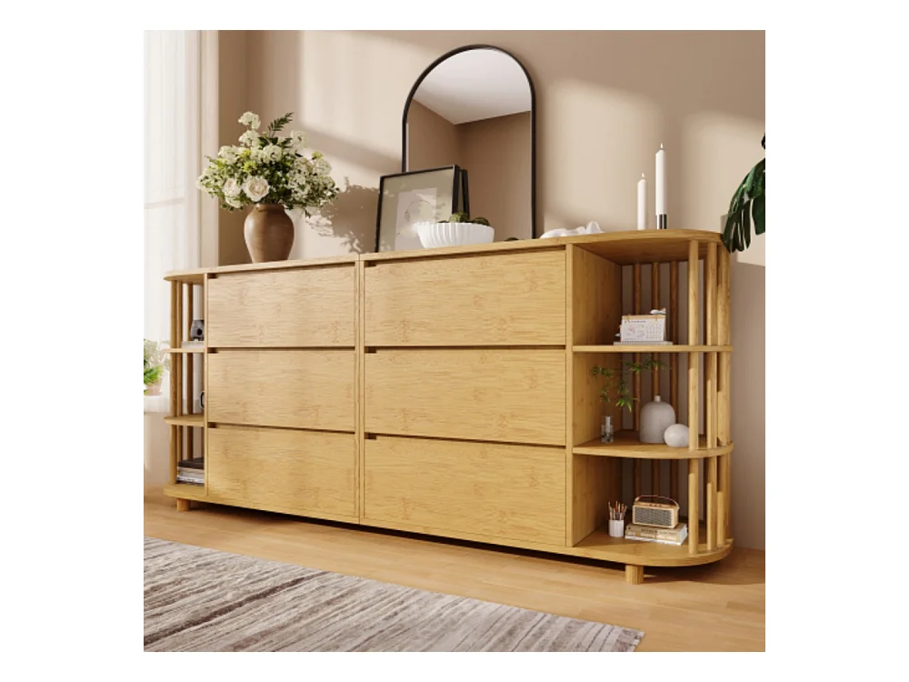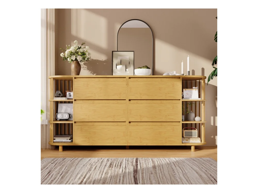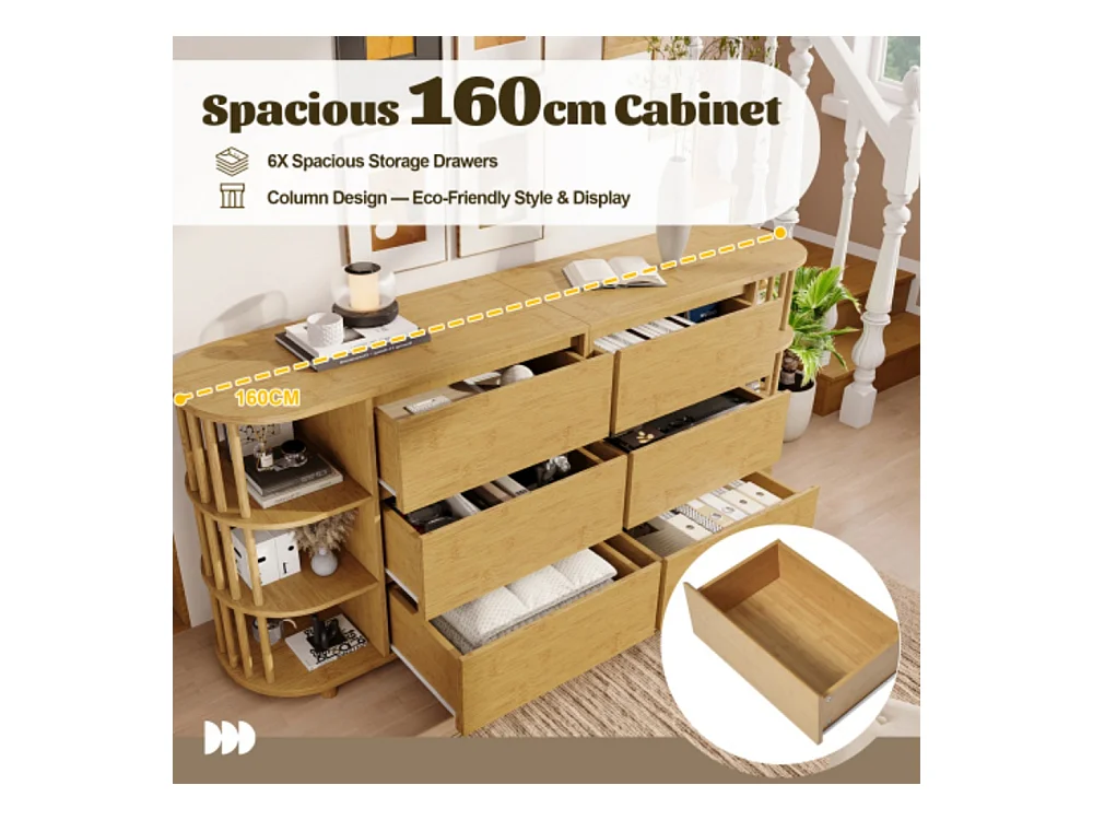 Kommode, Sideboard, 6 Schubladen & offene Regale, Höhenverstellbare Füße, Wohnzimmerunterschrank H75/B160/T40 cm