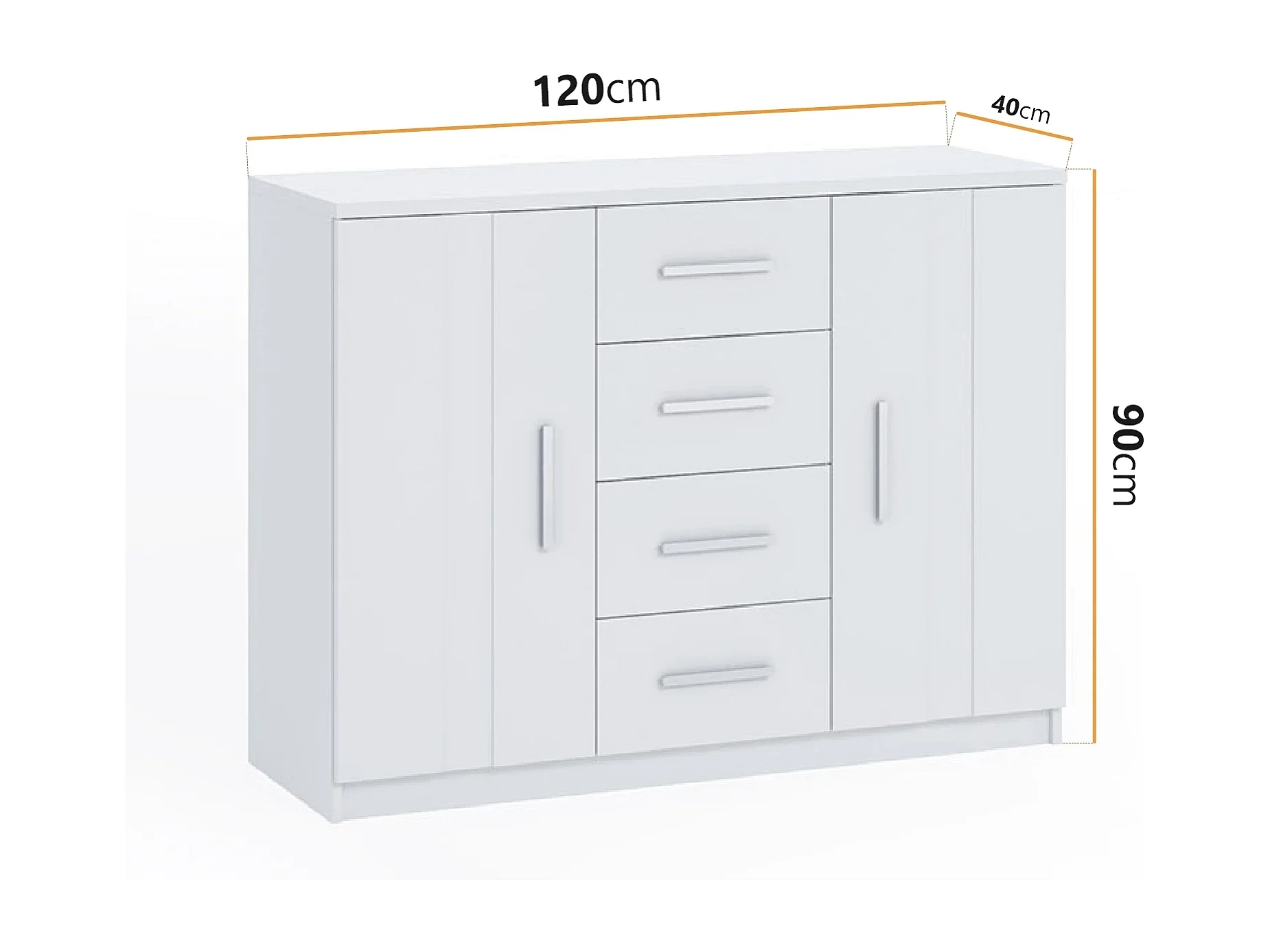 Kommode Tamiza 120 cm - Weiß (2 Türen, 4 Schubladen)