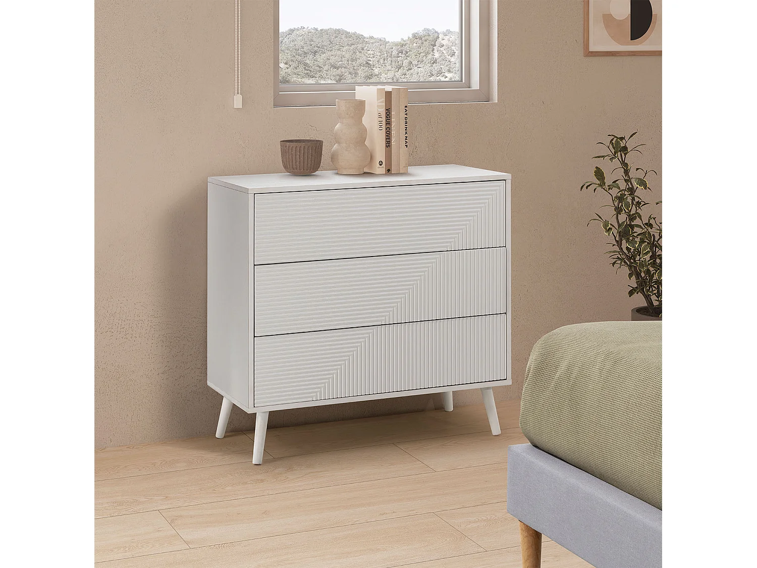 Kommode Telmo 3 schubladen Weiß