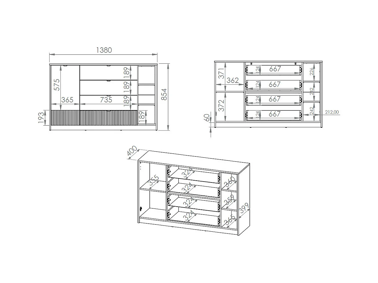 KOMMODE Torino Weiß / Eiche Castello / Graphit 138 / 40 / 86cm