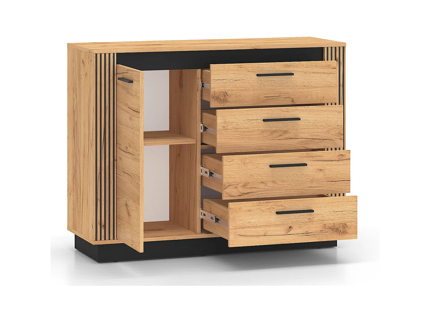KOMMODE Urso Gold Craft Eiche / Schwarz 115 / 40 / 90 cm