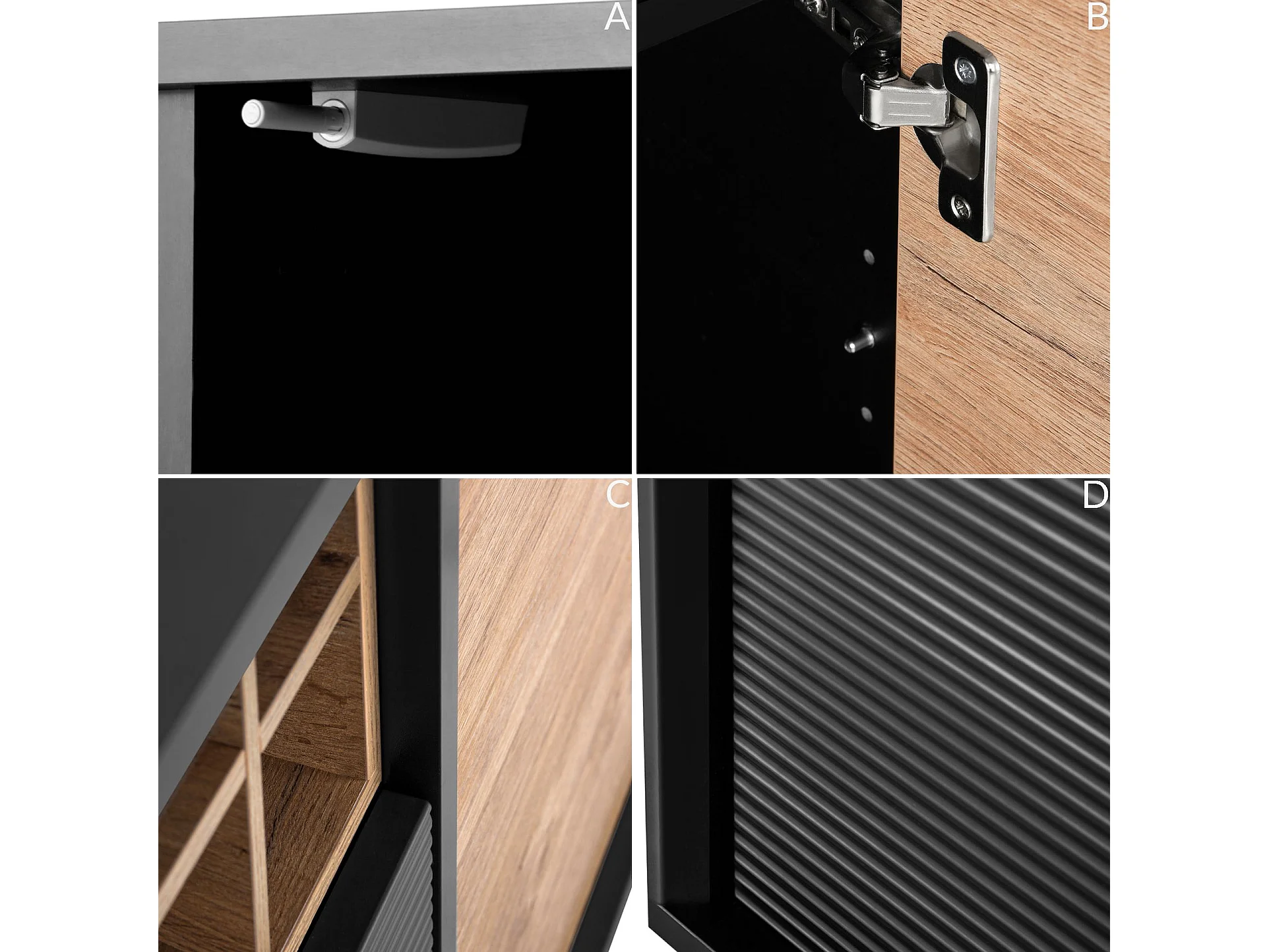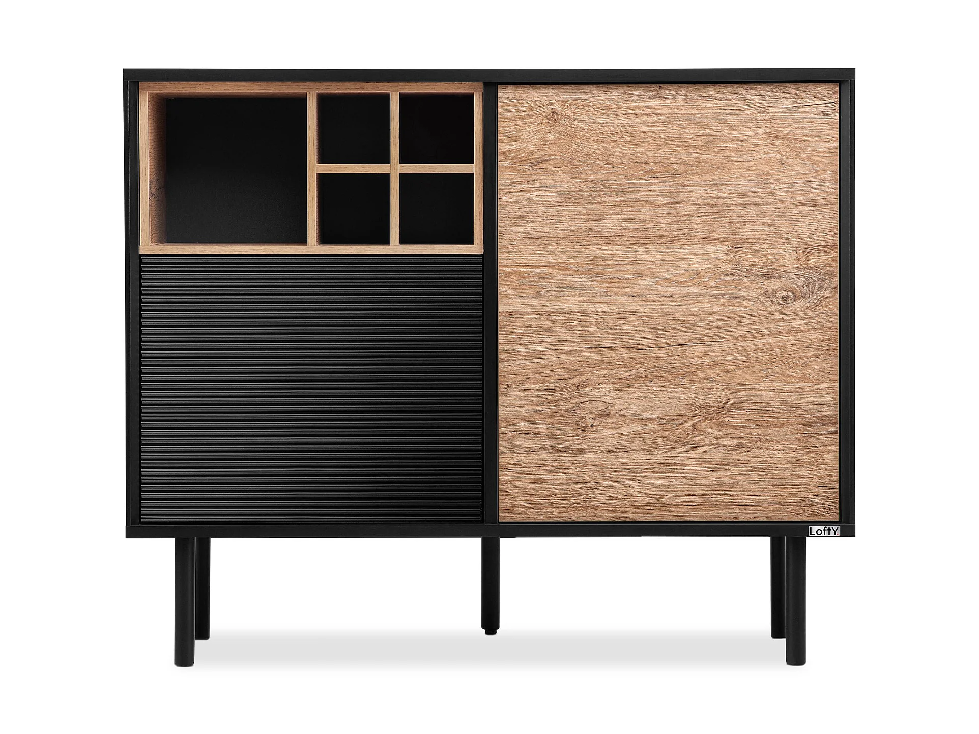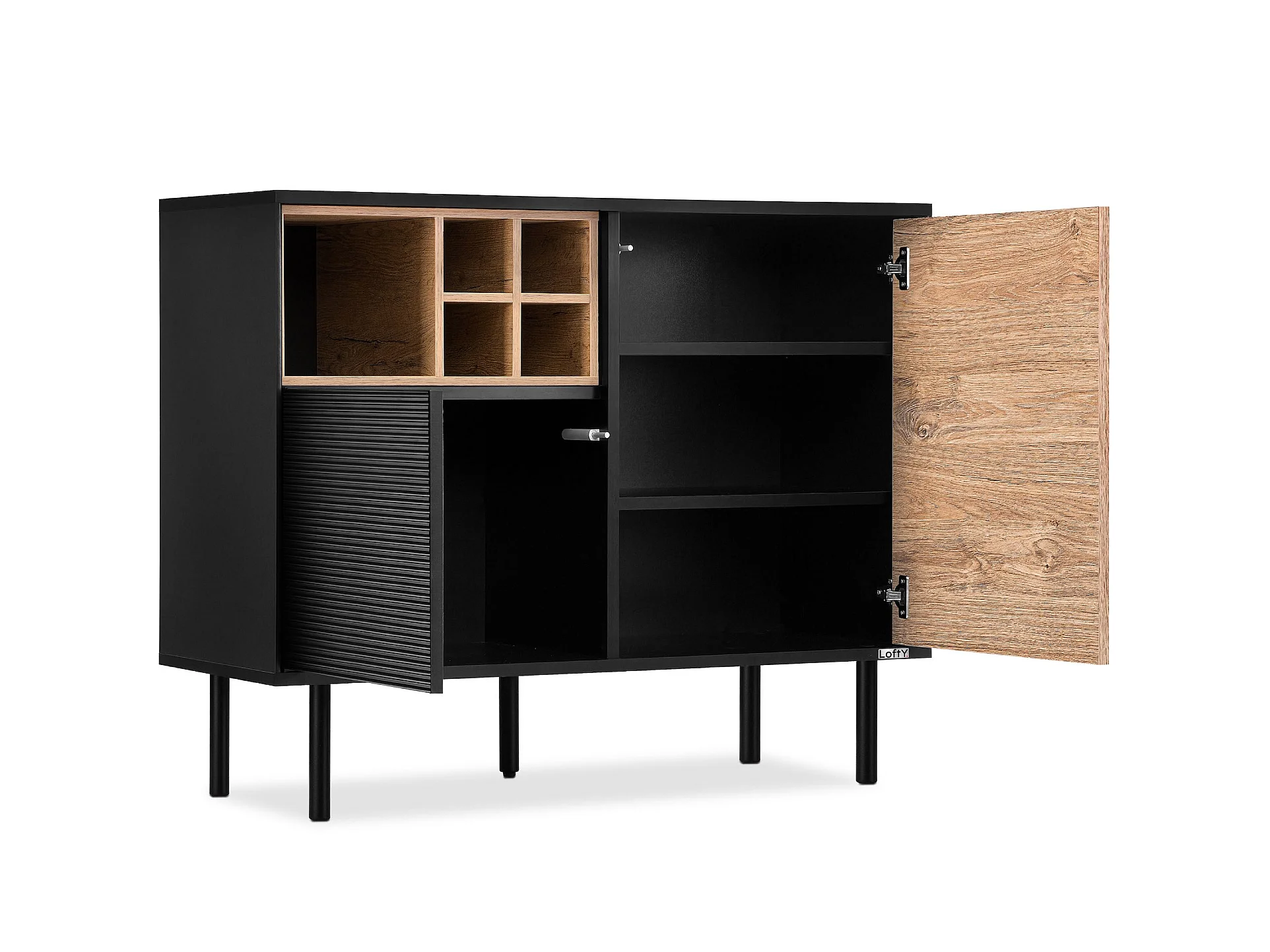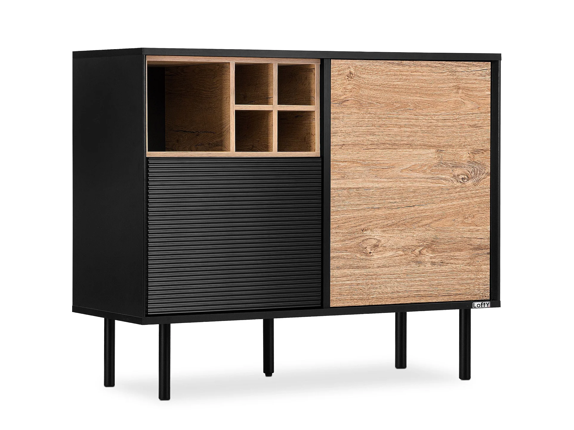 Kommode Weineinlage - schwarz / Eiche natur - LOFTY