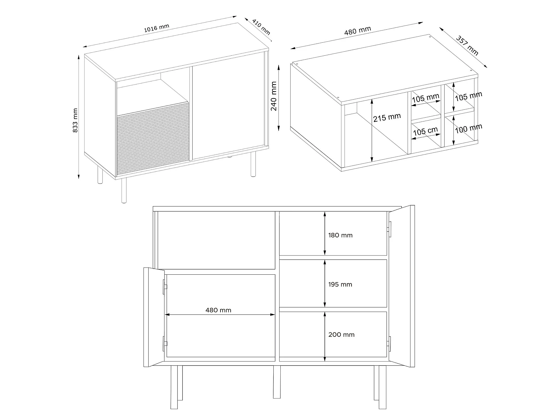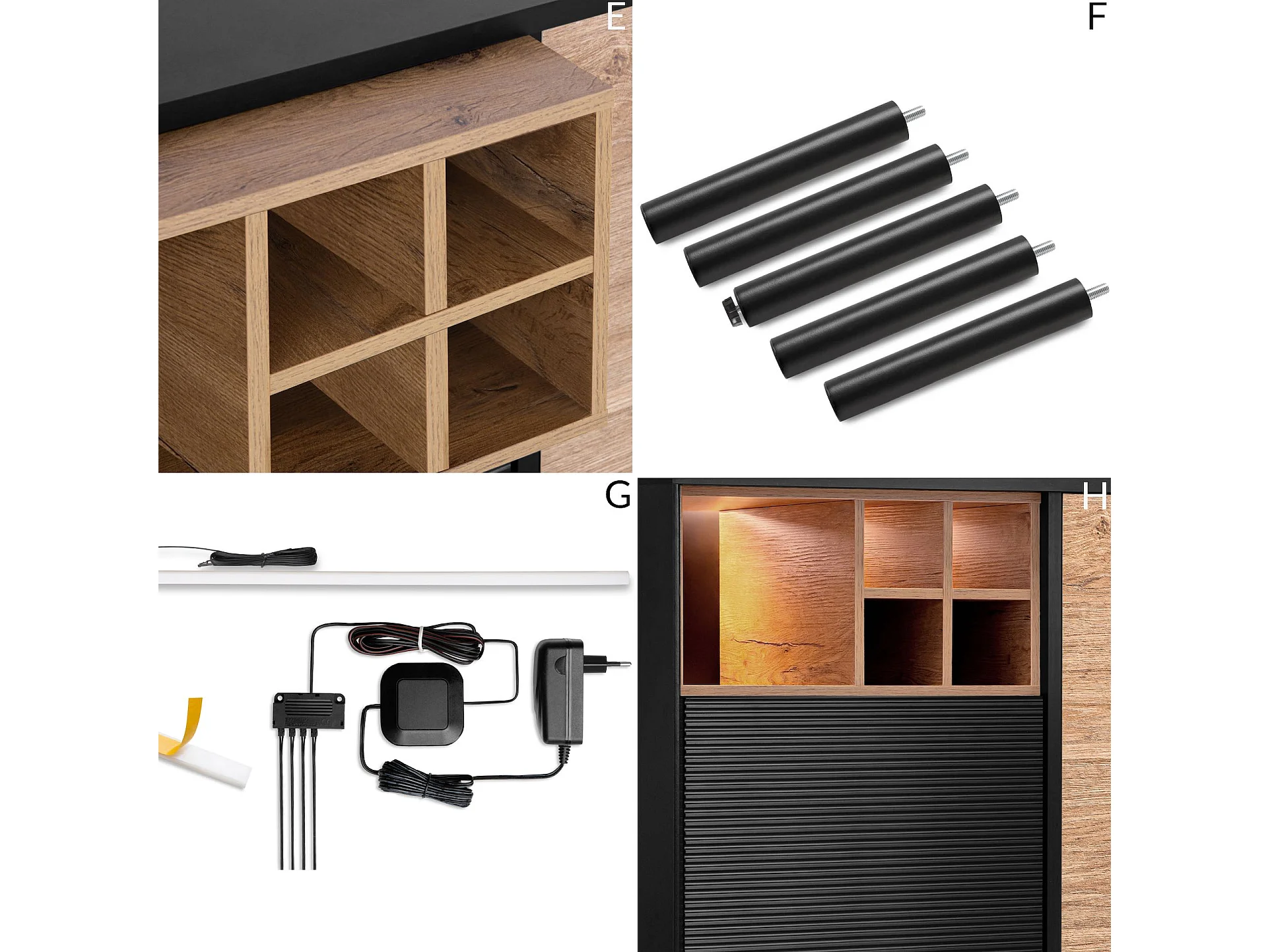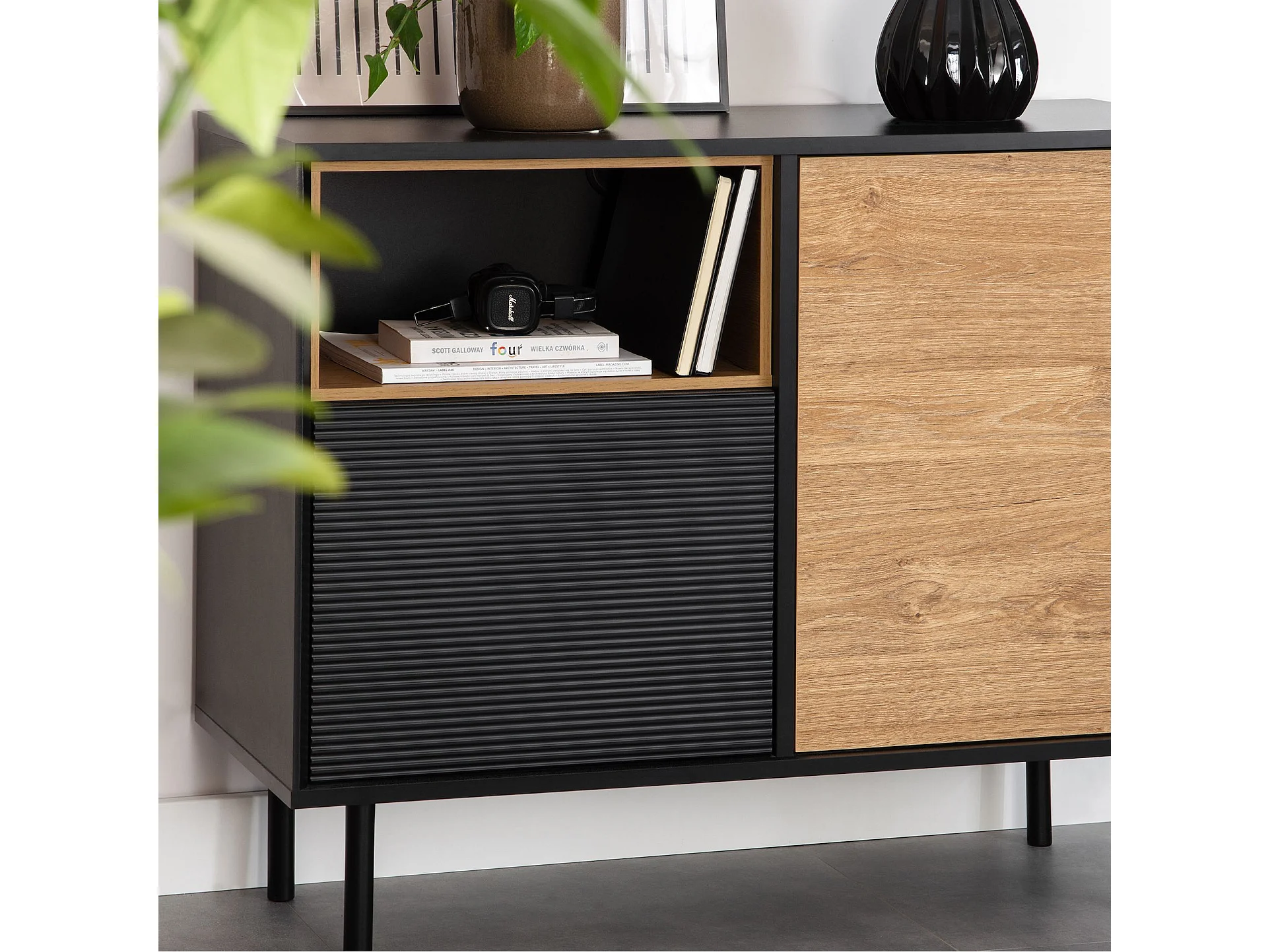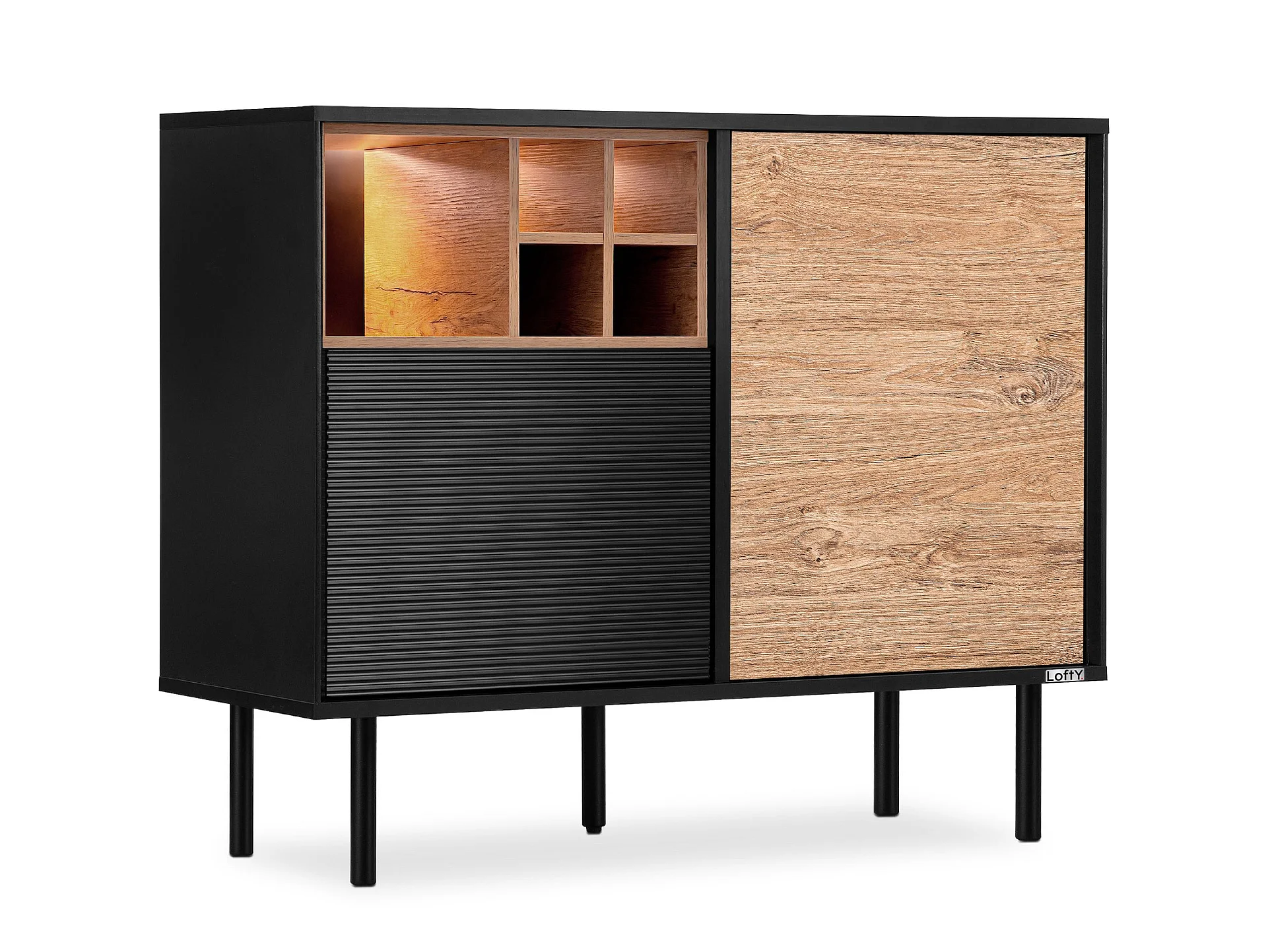 Kommode Weineinlage - schwarz / Eiche natur - LOFTY