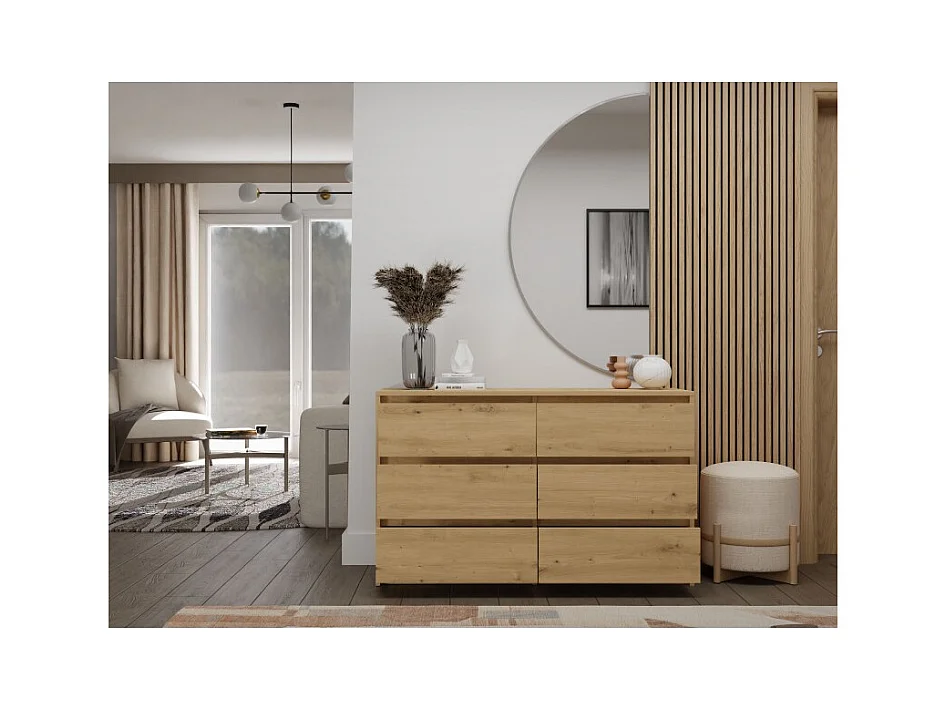 Komoda Karo K120 | Dąb Artisan | 120x40x73.5 cm | 6 Szuflad