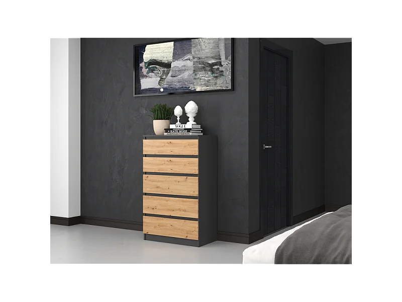 Komoda Malwa M5 | Antracyt/Dąb Artisan | 70x40x109,5 cm | Komoda z 5 Szufladami