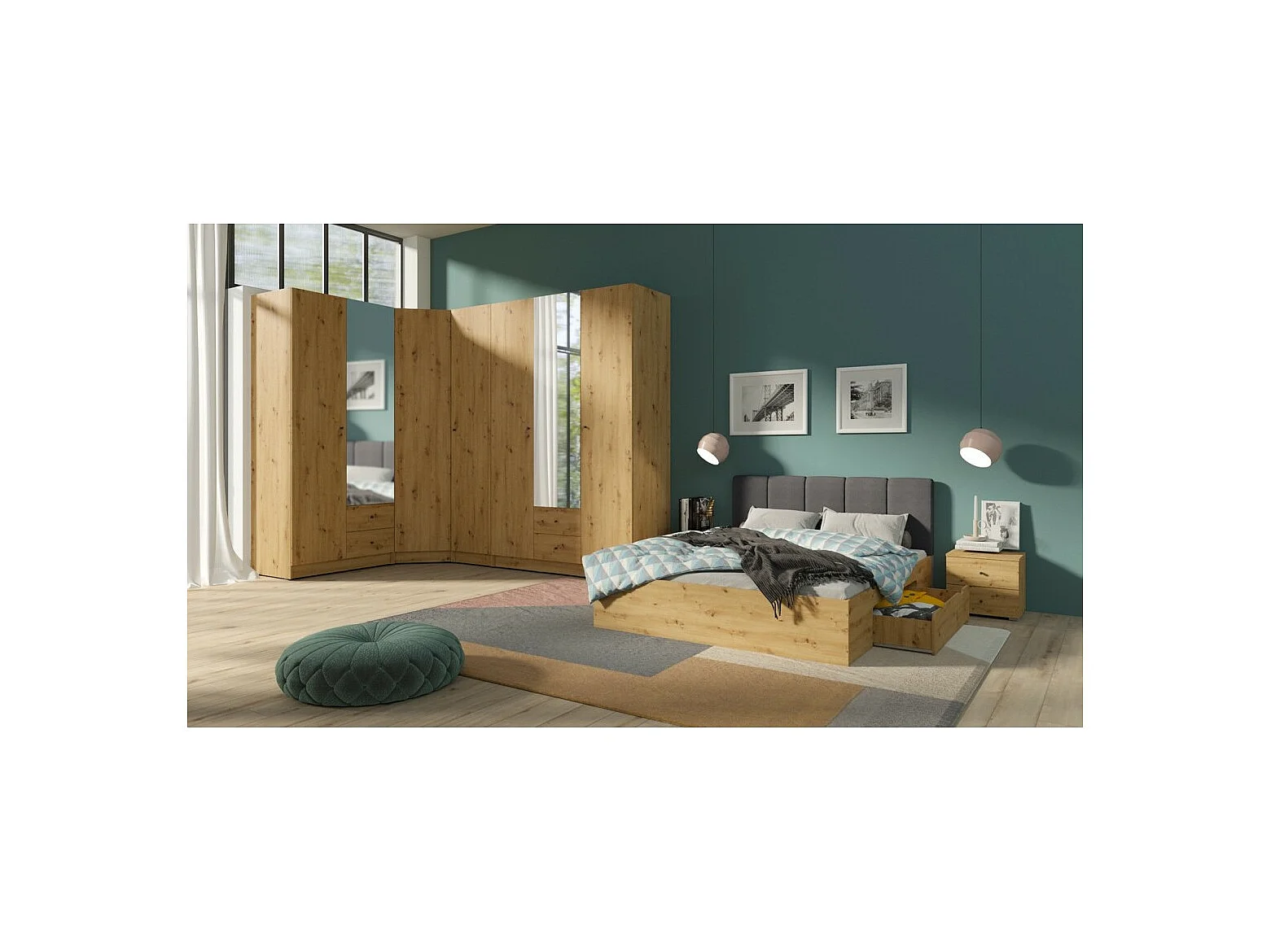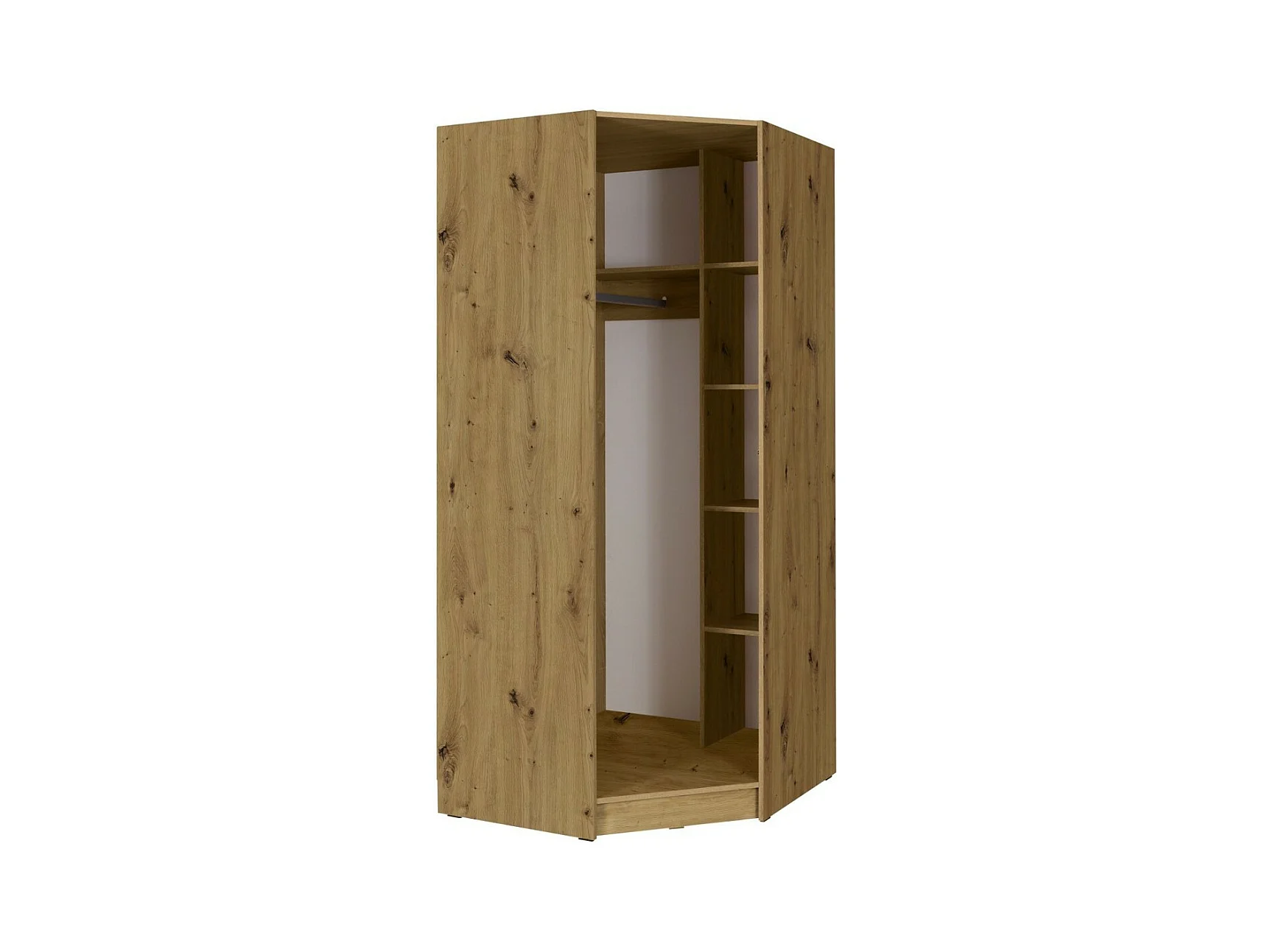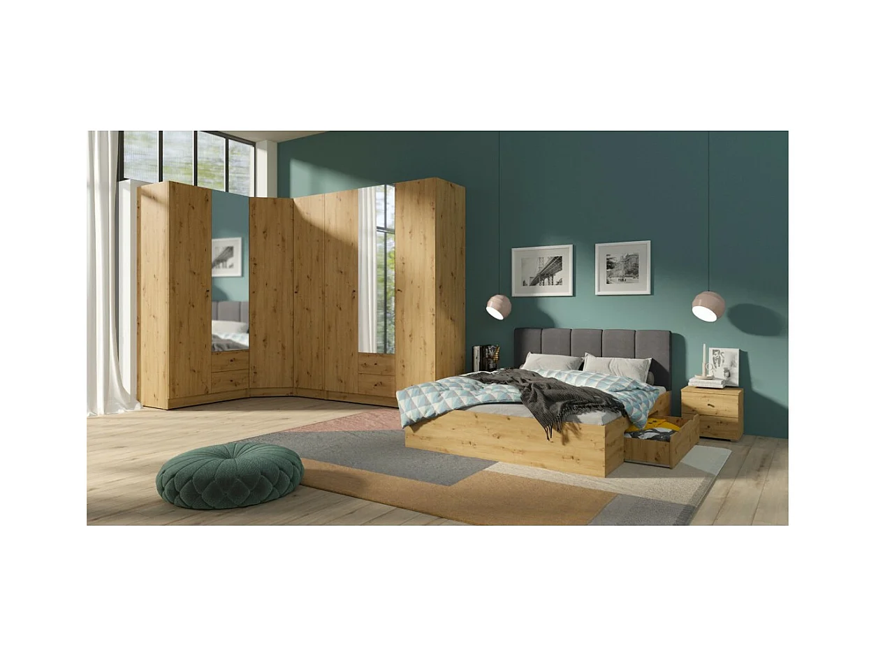 Kompletter Eckkleiderschrank aus der Kollektion KANELLE in hellem Eichenfarbton.