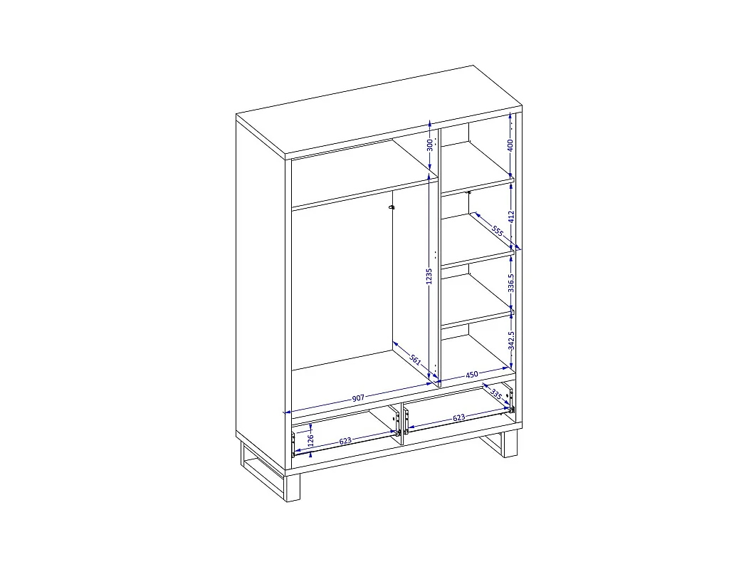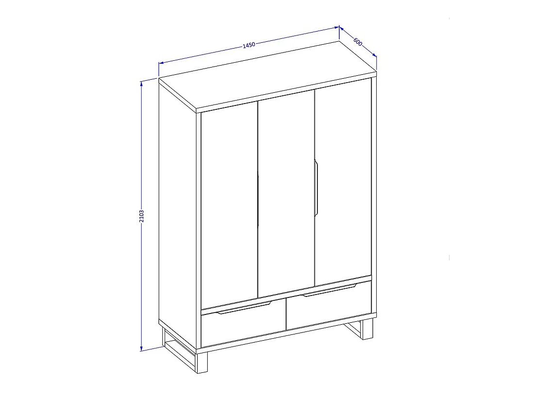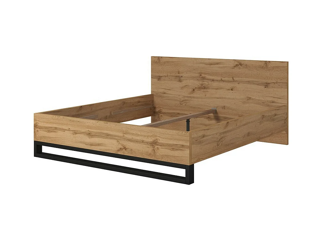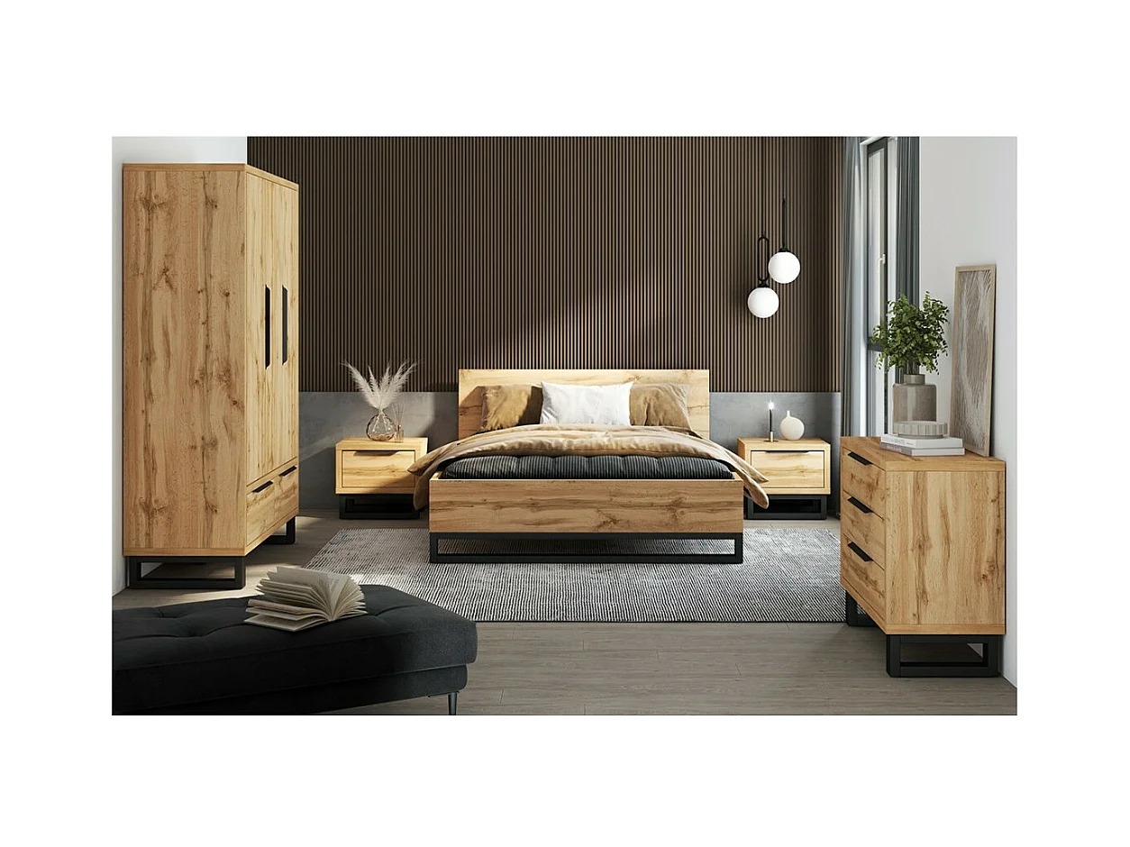 Komplettes Schlafzimmer im Industriestil, Kollektion MILOS: Kleiderschrank mit 3 Türen, Bett 180x200, Kommode, Nachttische, rohe Eiche und Schwarz
