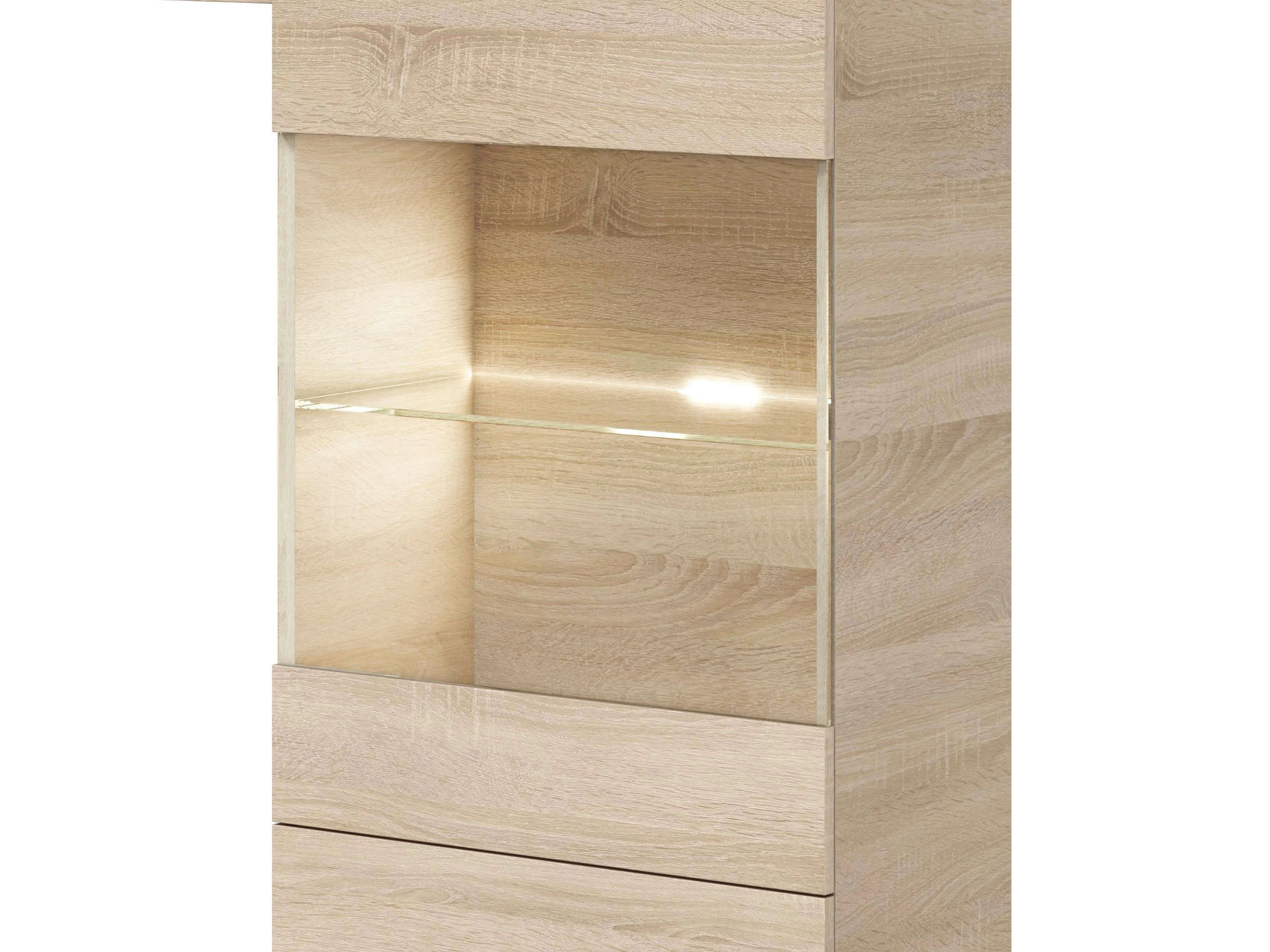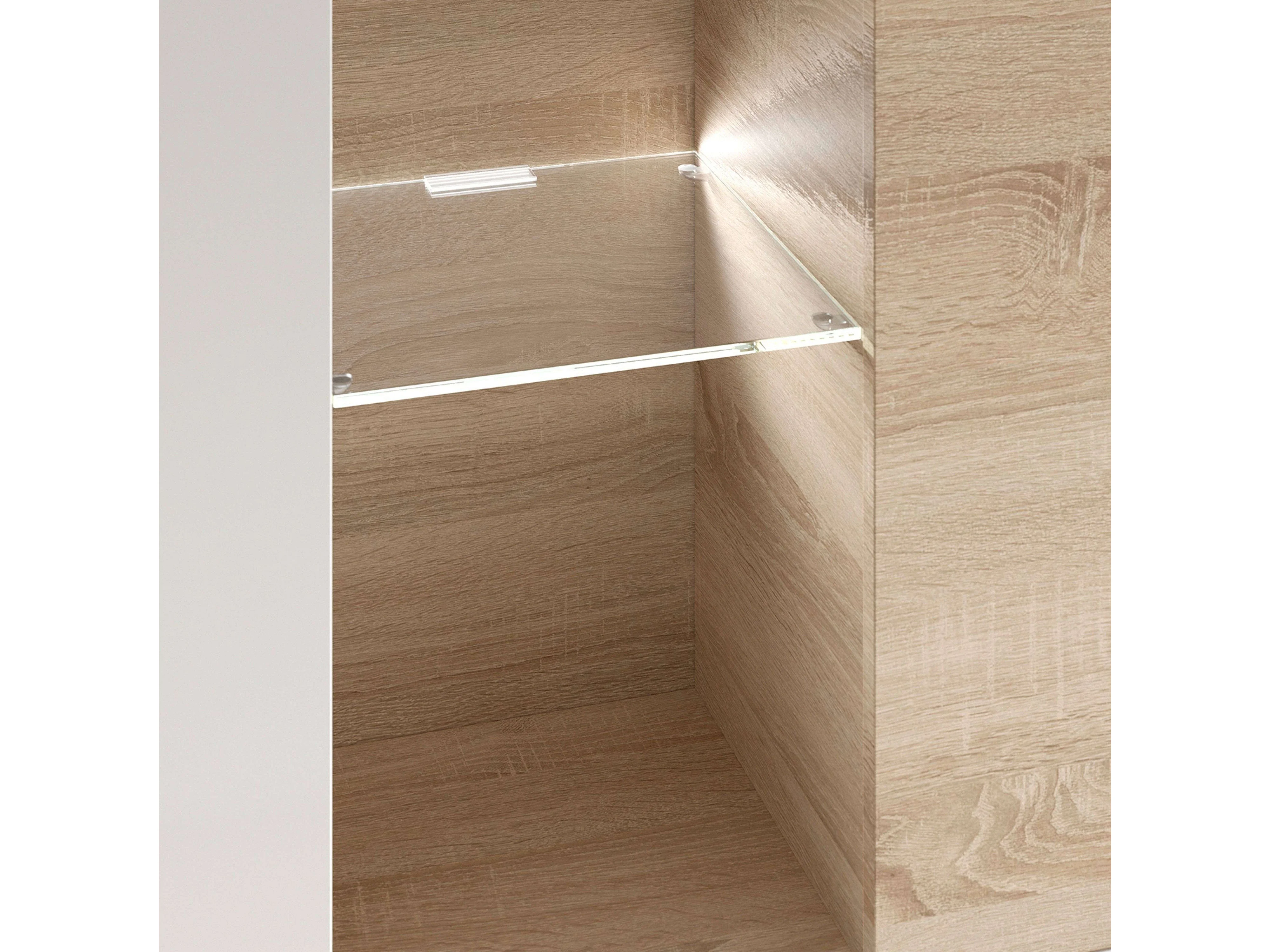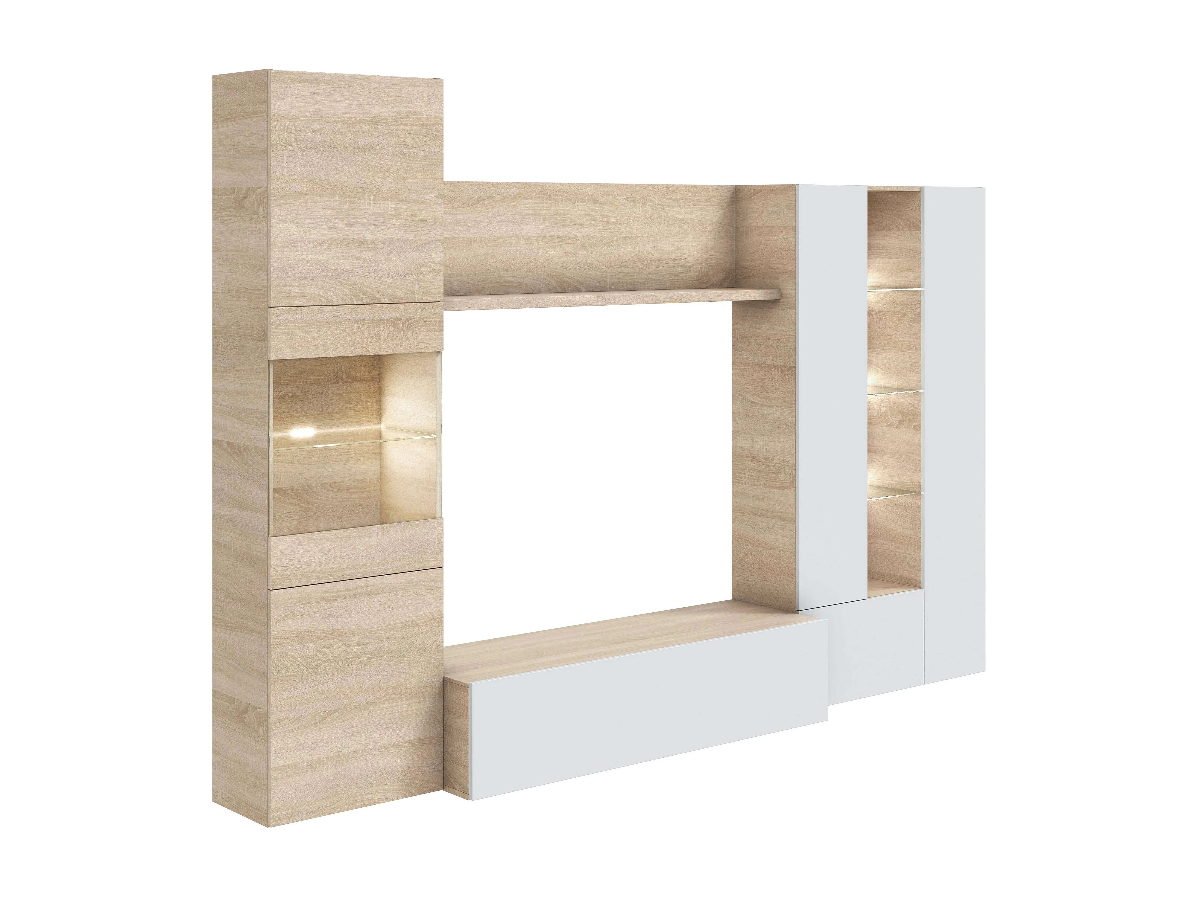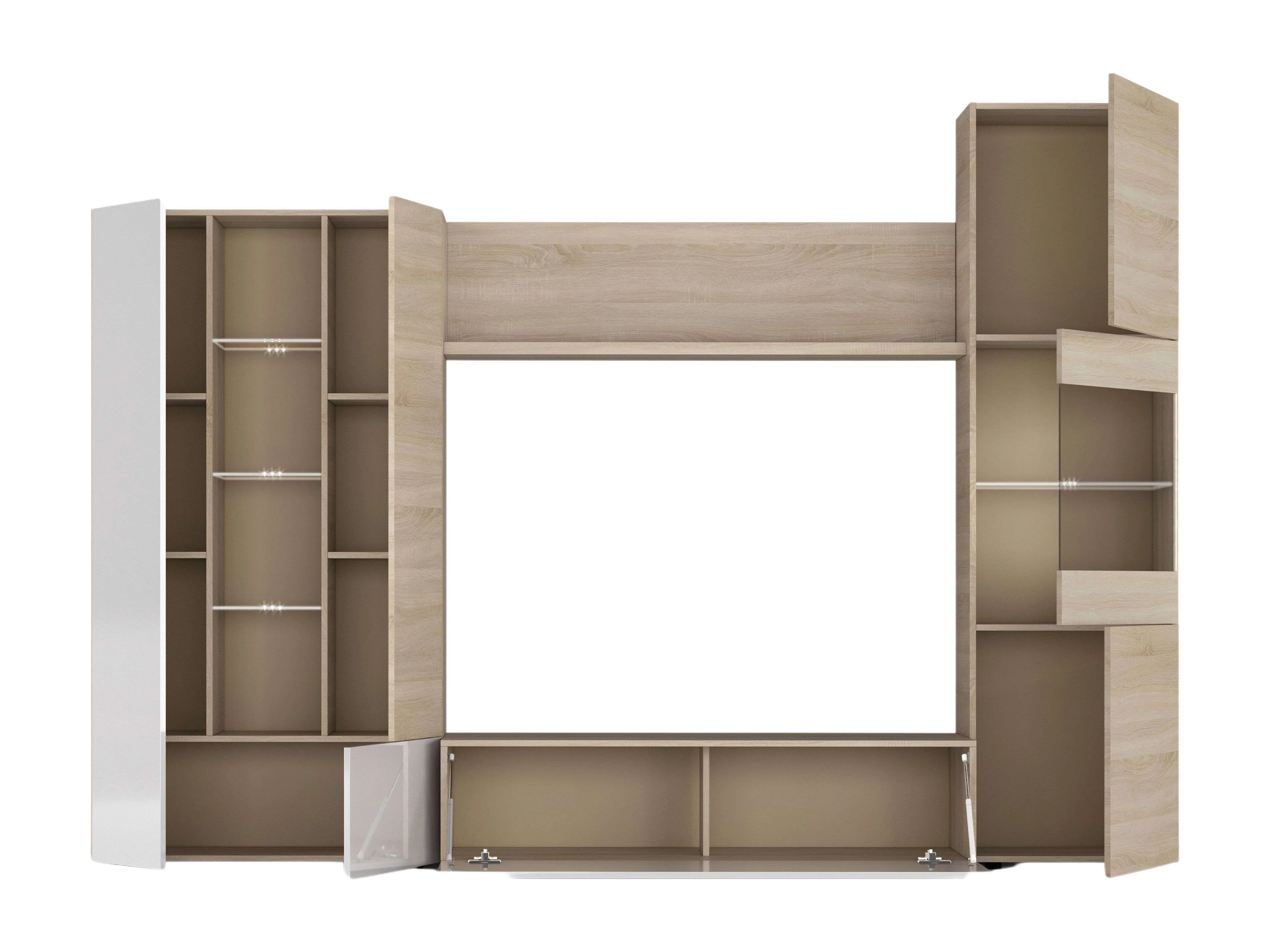 Komplettes Wohnzimmermöbel Essenttial 260x185 cm Hochglanz Weiß & Kanadische Eiche mit Stauraum und LED-Beleuchtung