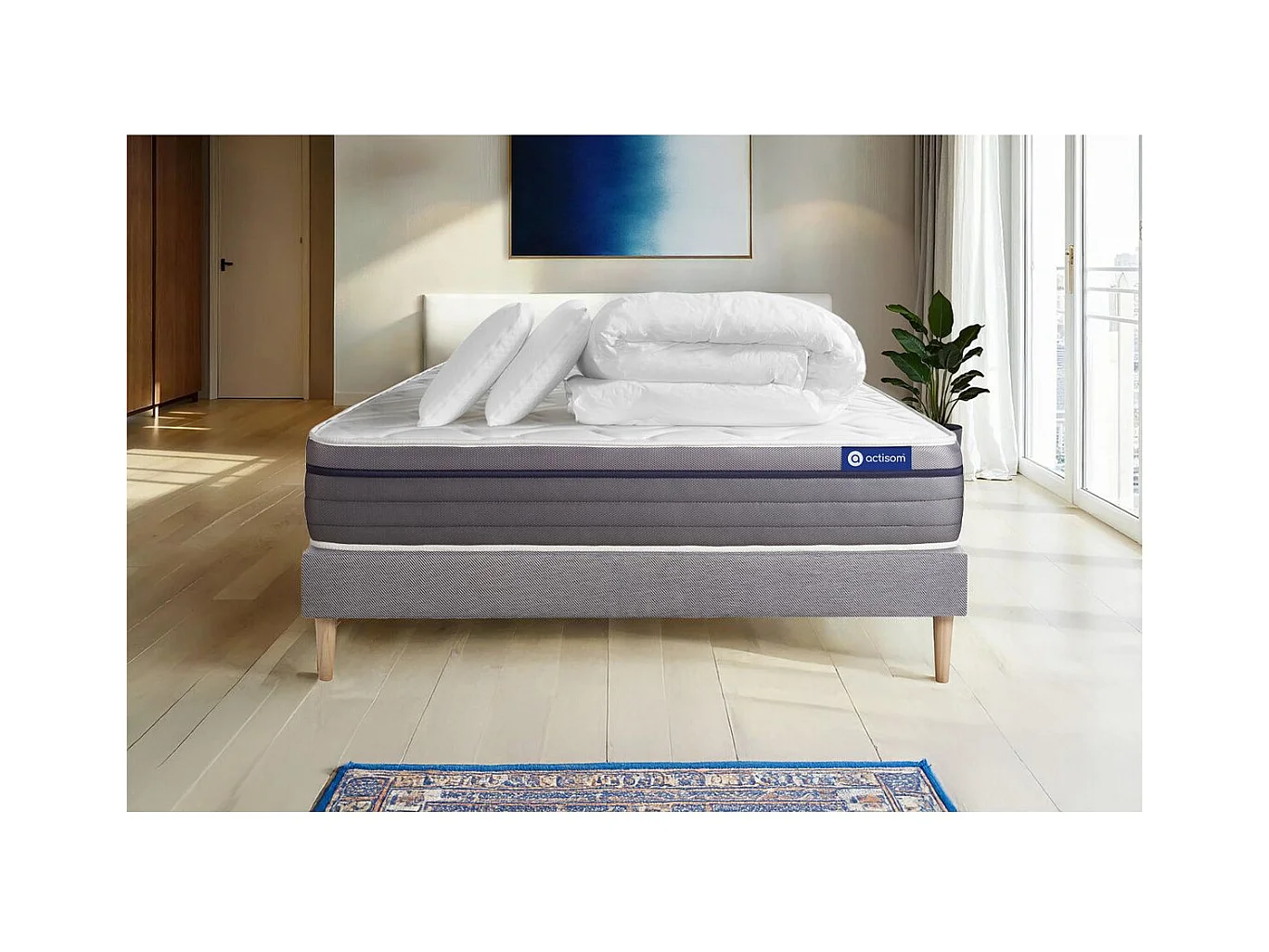 Komplettpaket Bett - Matratze 140x190 cm + Boxspringbett mit Lattenrost (im Set) + 2 Kopfkissen + Bettdecke - Actilatex Zen