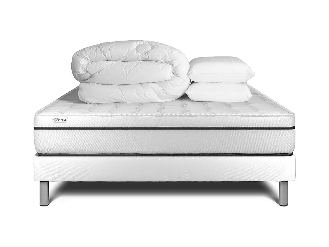 Komplettpaket Bett - Matratze 140x190 cm + Boxspringbett mit Lattenrost (im Set) + 2 Kopfkissen + Bettdecke - Vital Spa