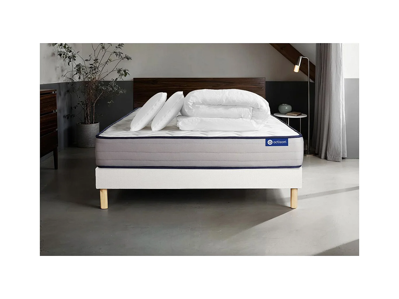 Komplettpaket Bett - Matratze 140x200 cm + Boxspringbett mit Lattenrost (im Set) + 2 Kopfkissen + Bettdecke - Actiflex Form
