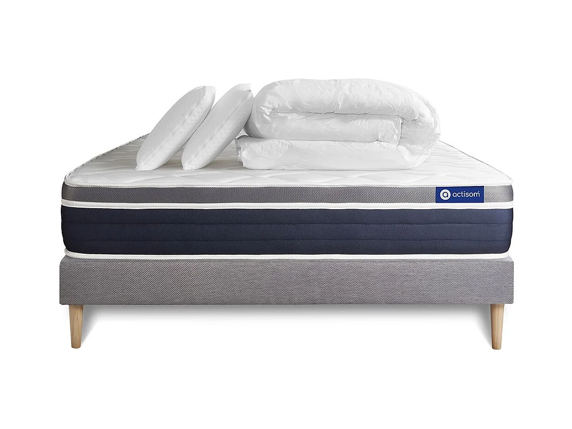 Komplettpaket Bett - Matratze 160x200 cm + Boxspringbett mit Lattenrost (im Set) + 2 Kopfkissen + Bettdecke - Actilatex Confort