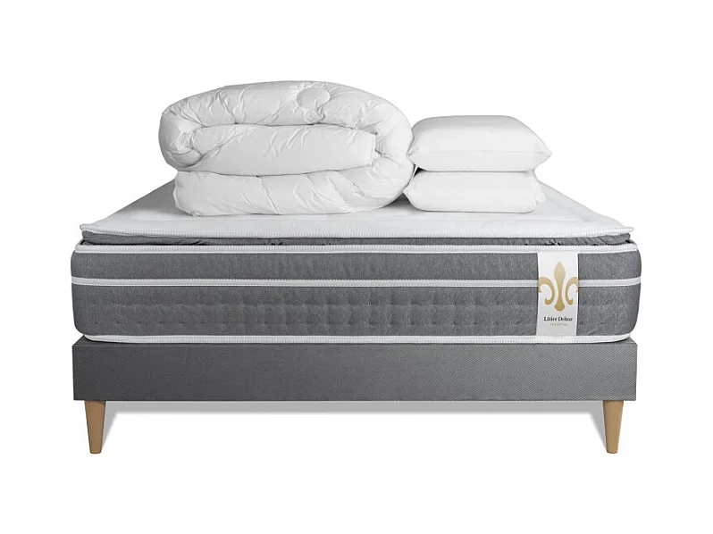 Komplettpaket Bett - Matratze 160x200 cm + Boxspringbett mit Lattenrost (im Set) + 2 Kopfkissen + Bettdecke - Trente PLUS