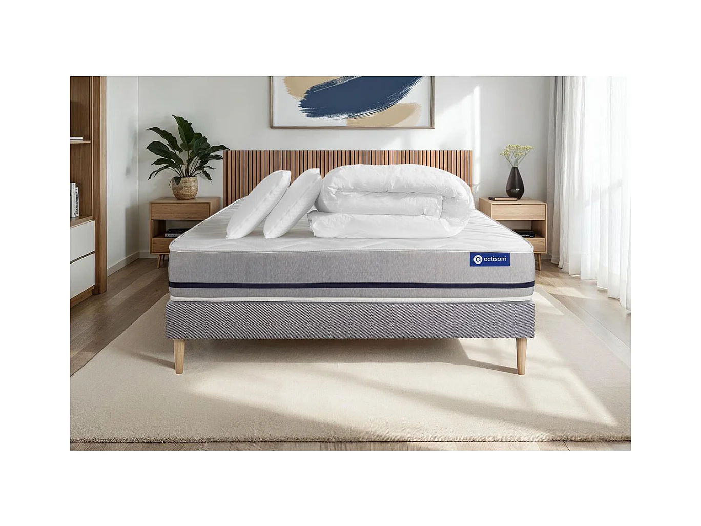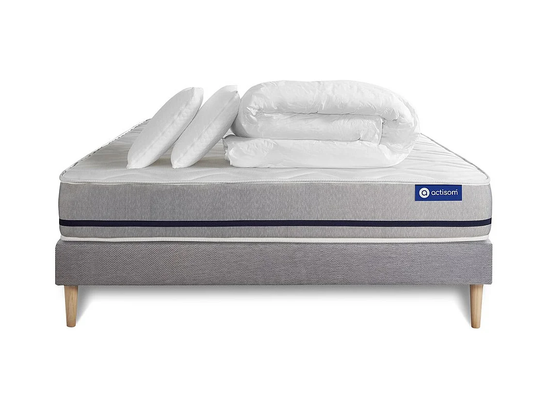 Komplettpaket Bett - Matratze 200x200 cm + Boxspringbett mit Lattenrost (im Set) + 2 Kopfkissen + Bettdecke - Actiflex Soft