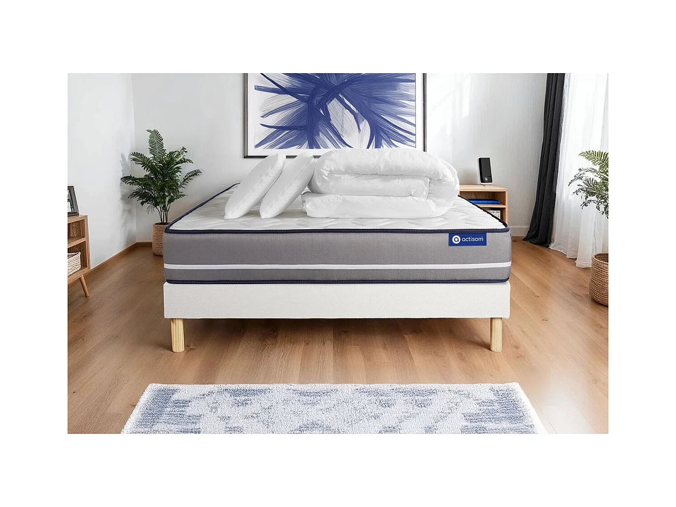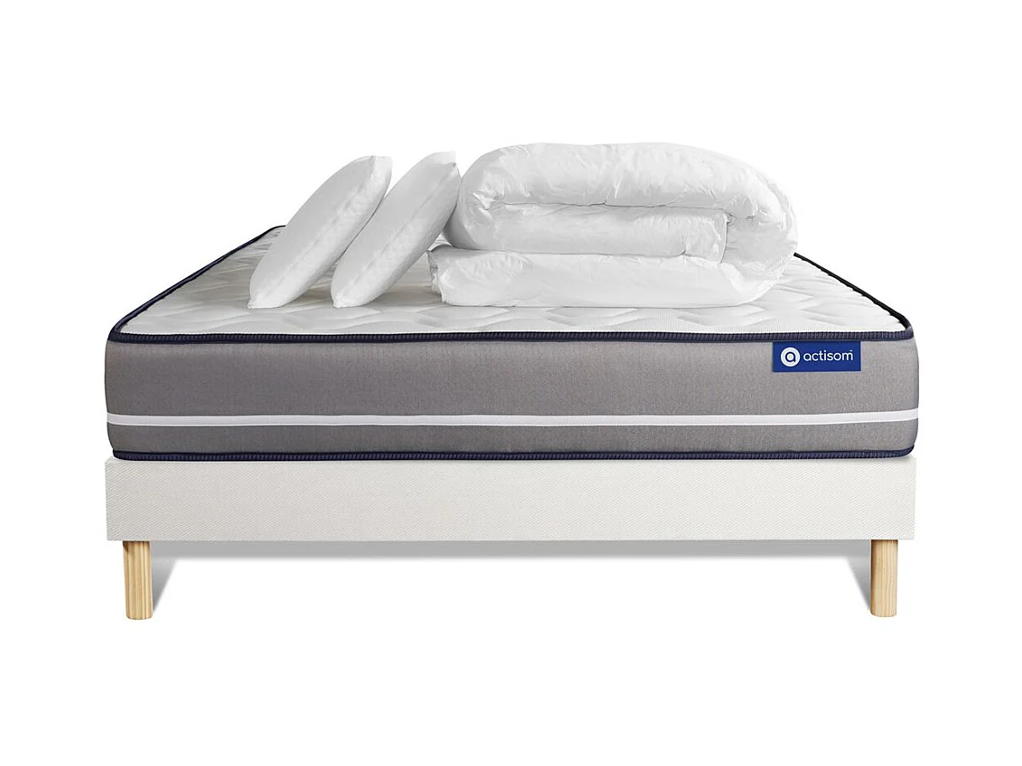 Komplettpaket Bett - Matratze 200x200 cm + Boxspringbett mit Lattenrost (im Set) + 2 Kopfkissen + Bettdecke - Actilatex Pur
