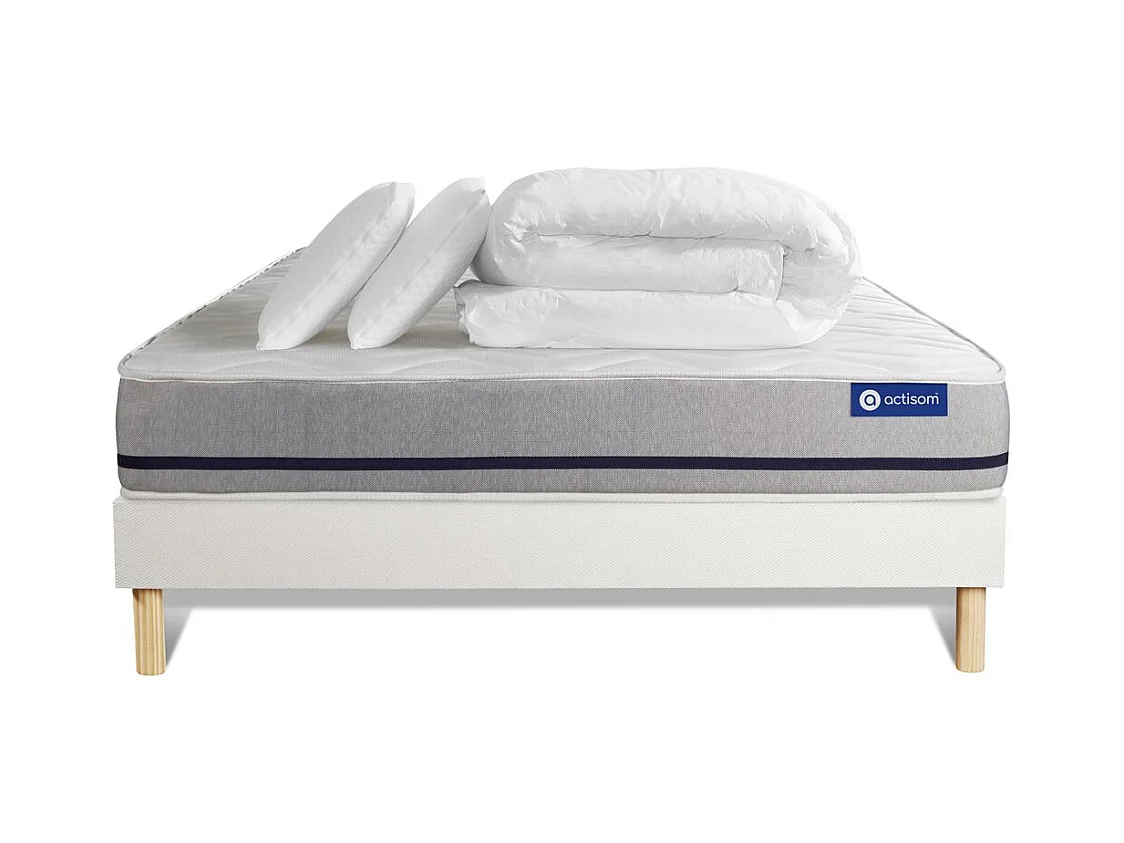 Komplettpaket Bett - Matratze 200x200 cm + Boxspringbett mit Lattenrost (im Set) + 2 Kopfkissen + Bettdecke - Actimemo Soft