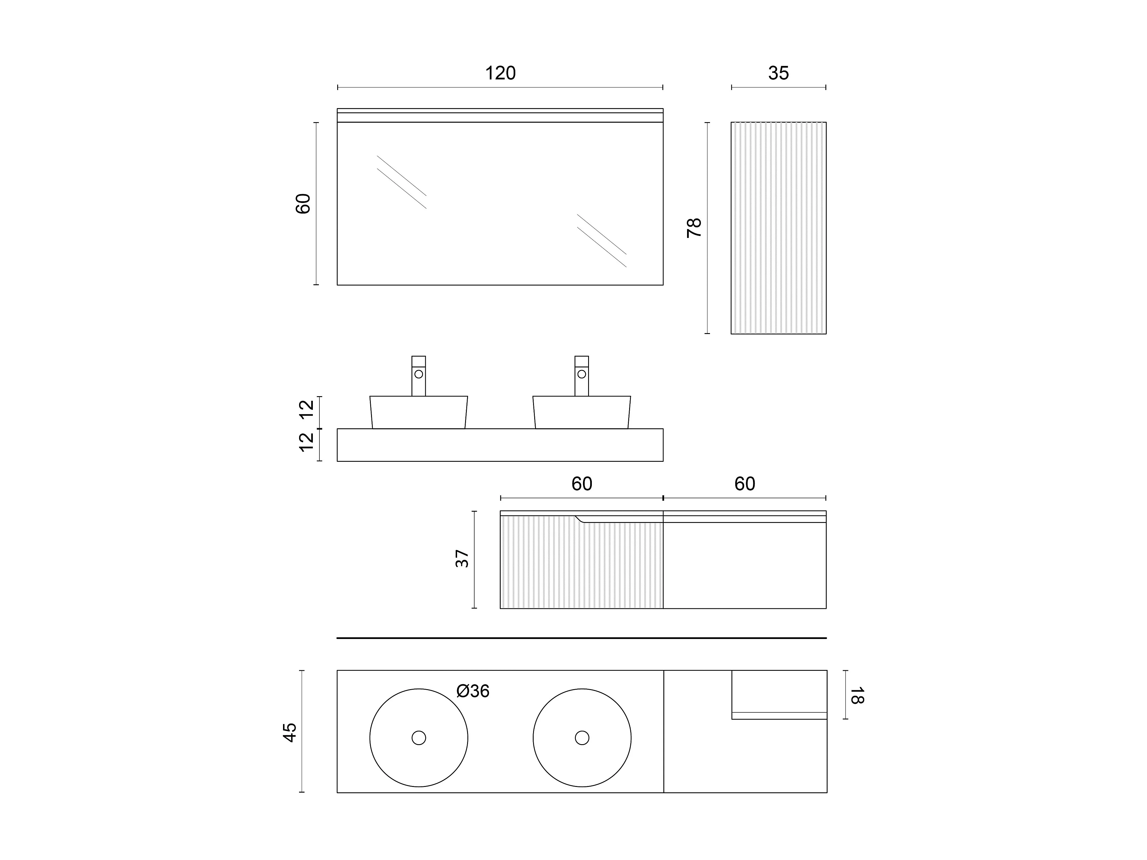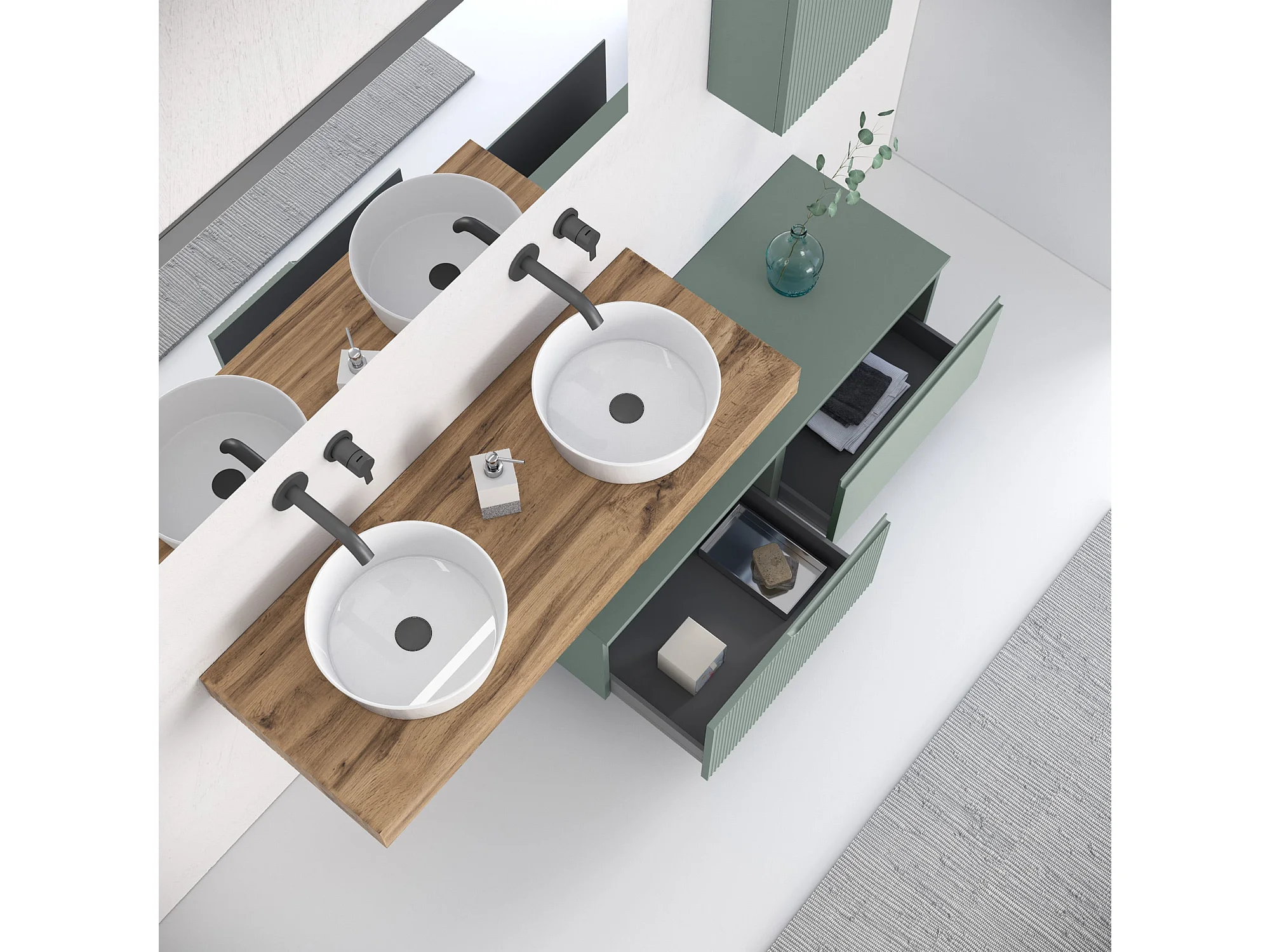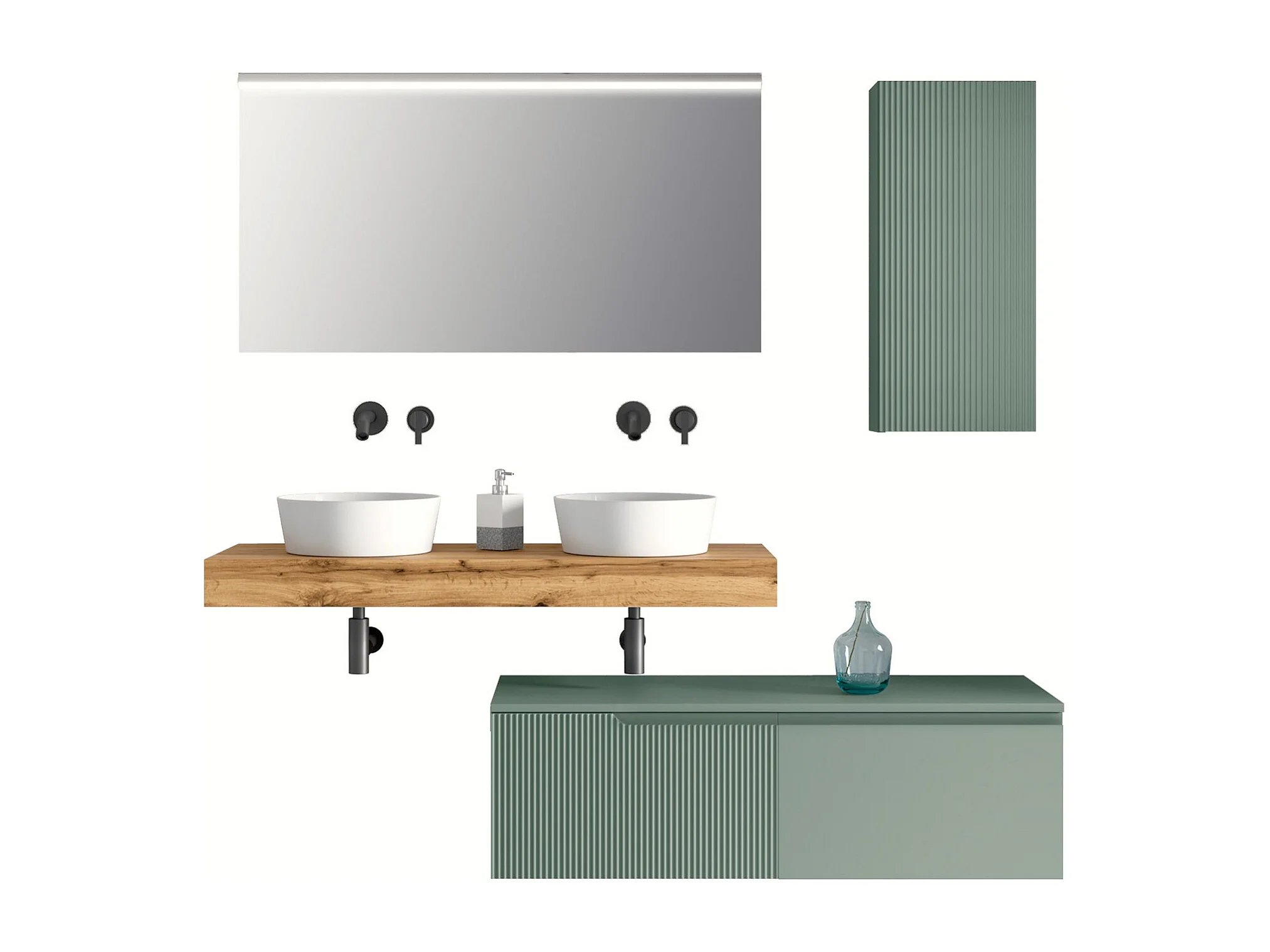 Komposition Doppelwaschbecken 7-teilig VENERE eiche / salbei