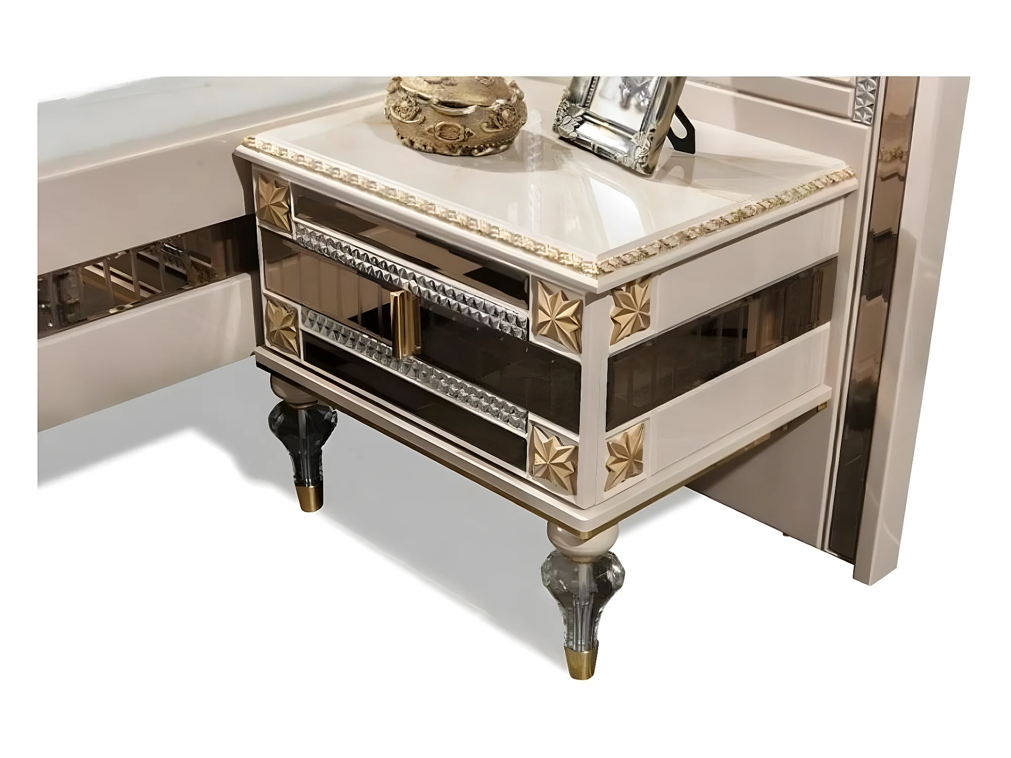 Königliches Schlafzimmer Bett Nachttische Kleiderschrank Gold Glanz 4tlg.
