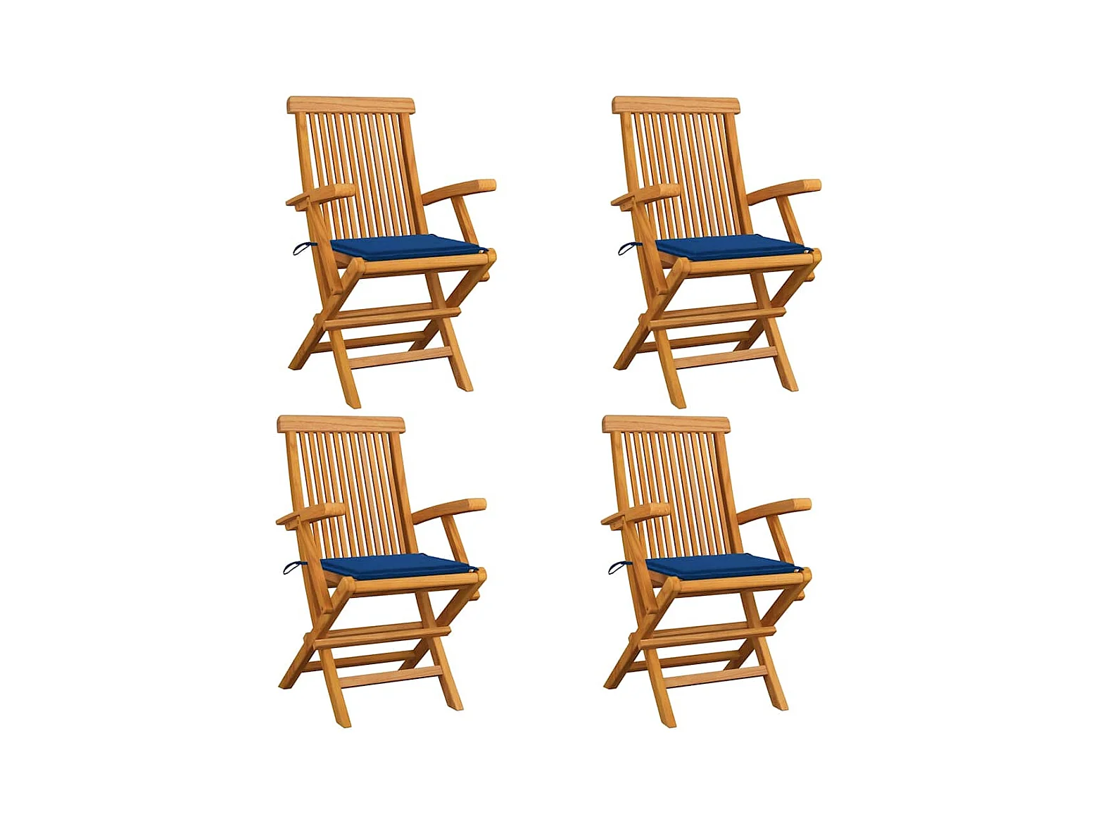 Königsblaue Gartenstühle und Kissen 4er-Set aus Teakholz