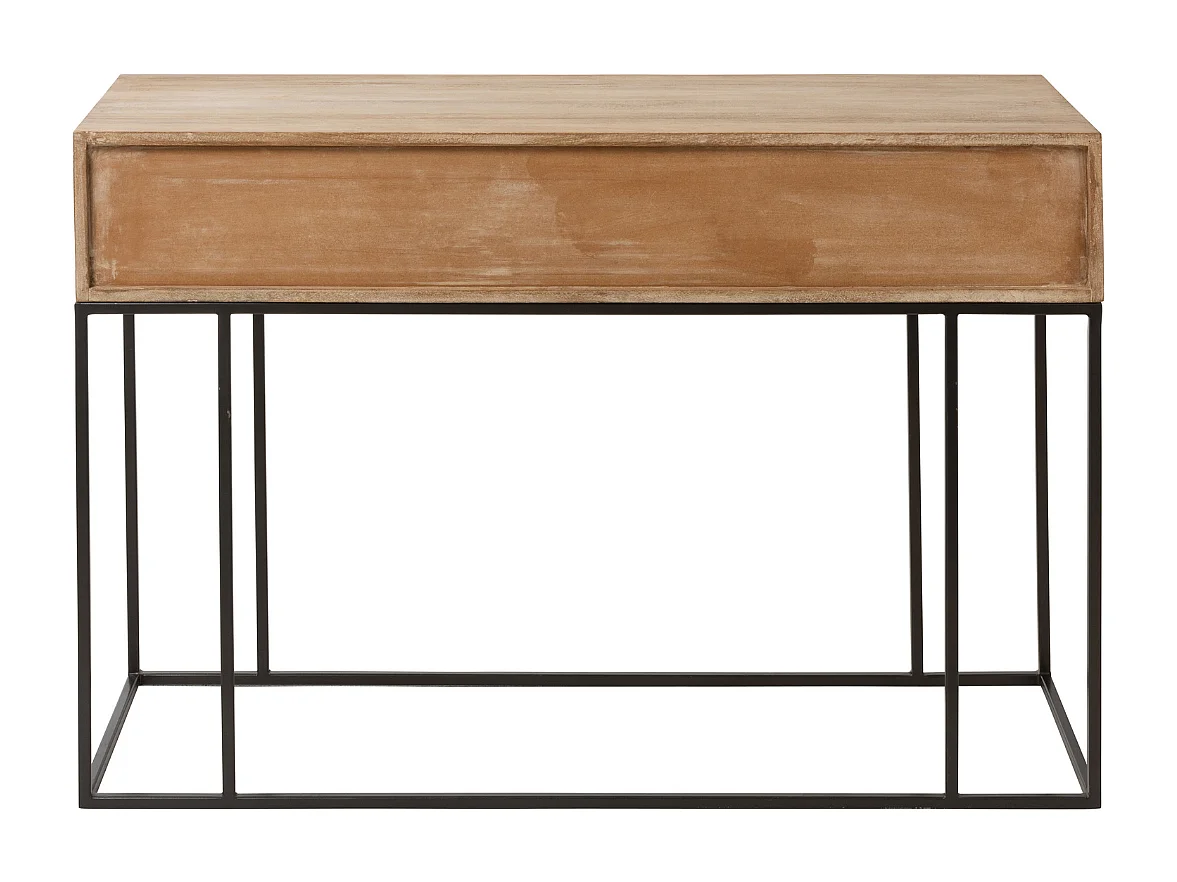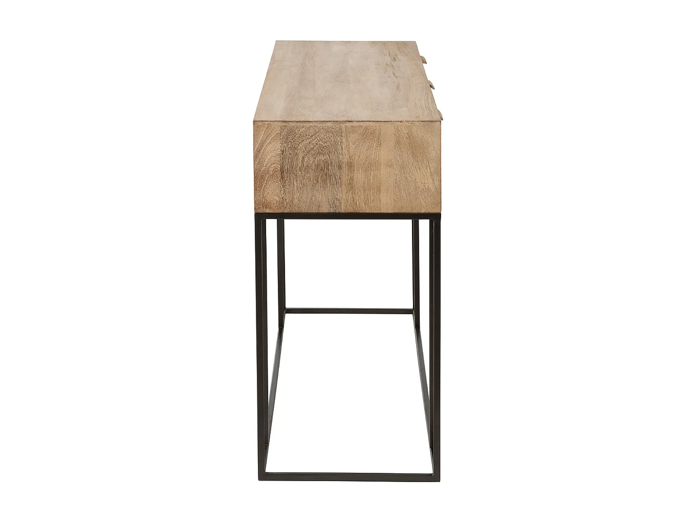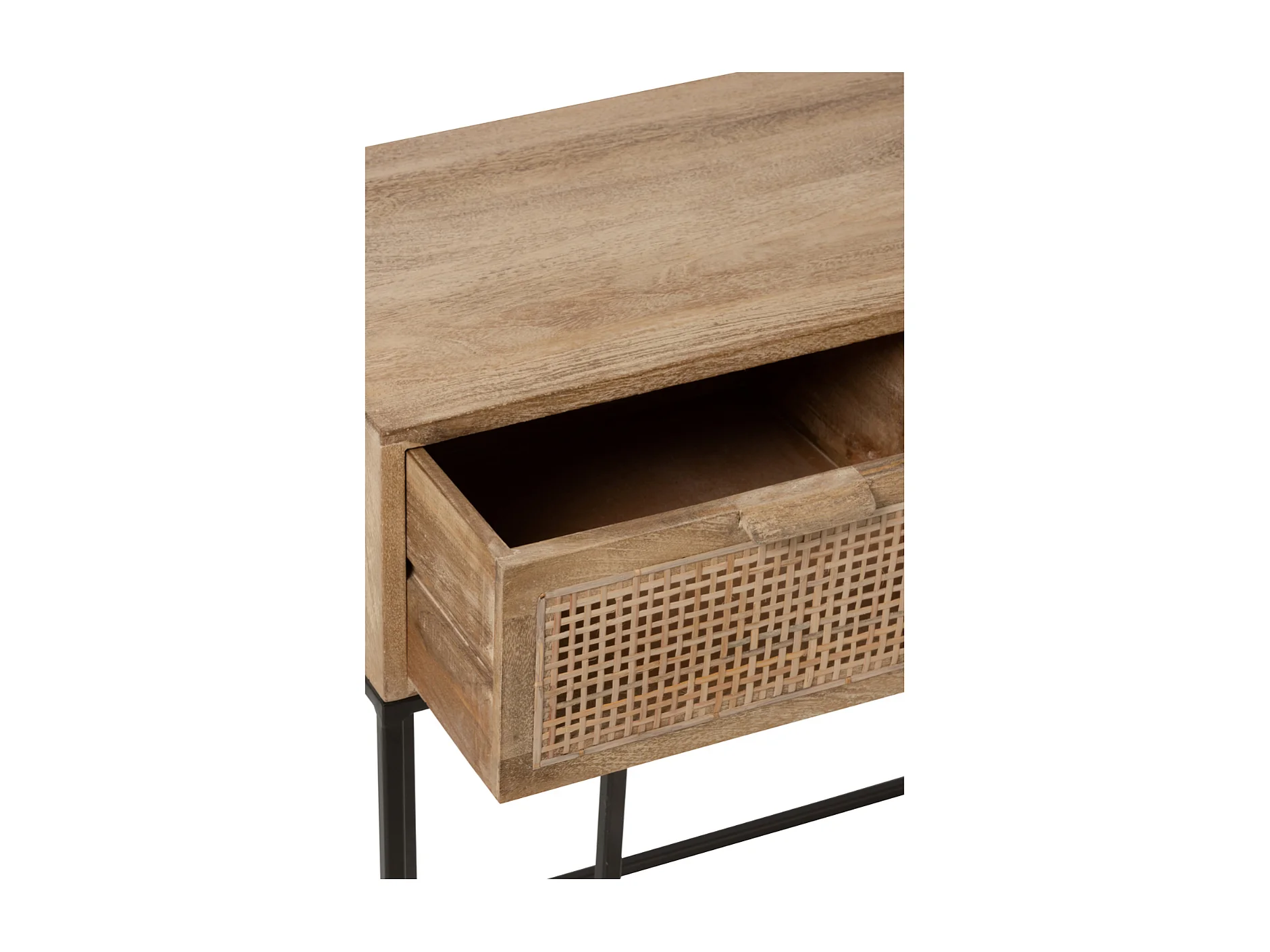 Konsole 3 Schubladen aus natürlichem Mangoholz und gewebtem Rattan