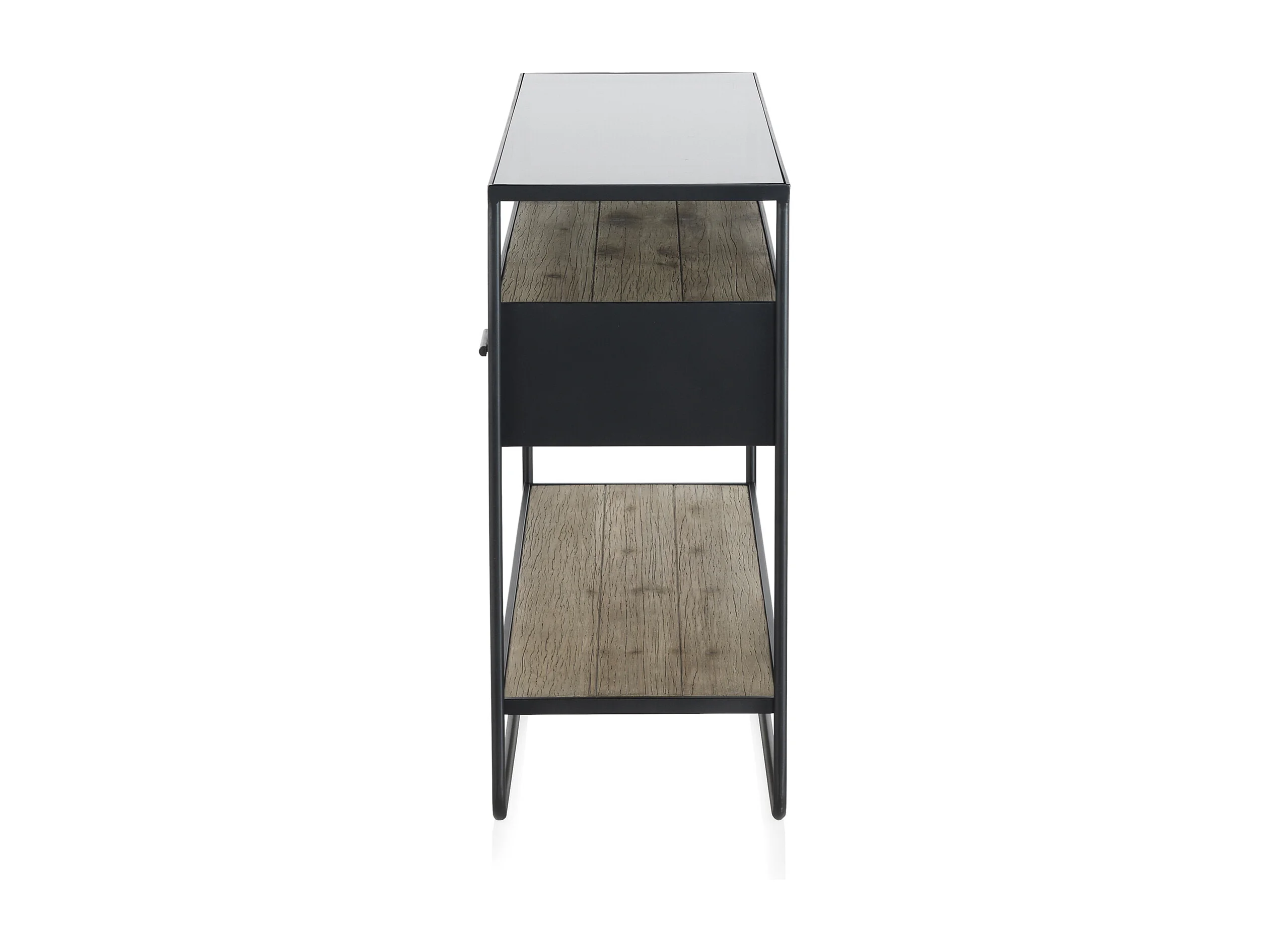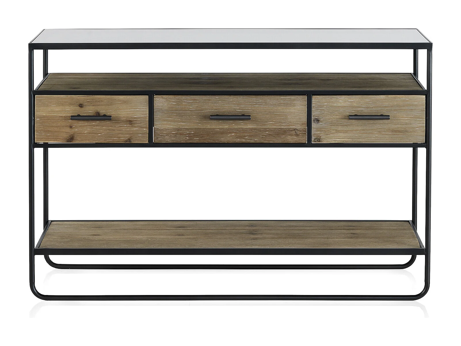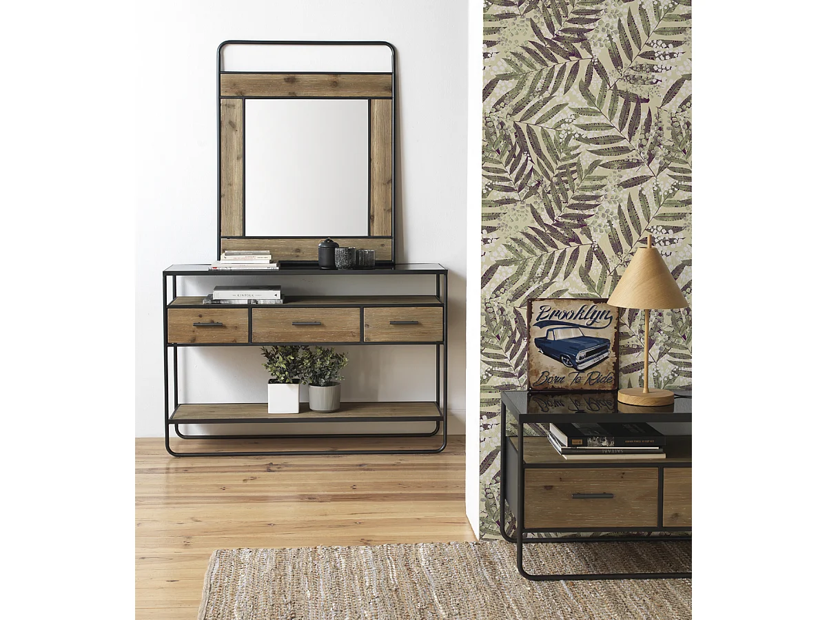 Konsole aus Tannenholz und Eisen mit Rauchglasplatte
