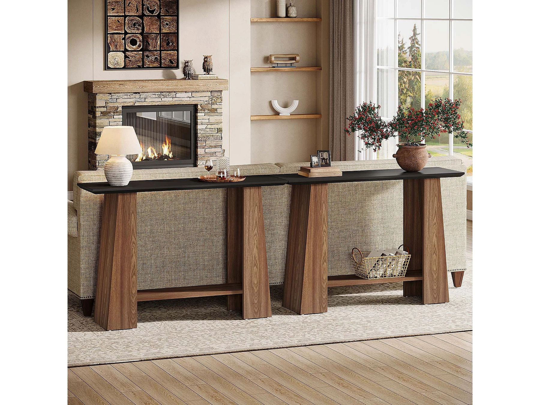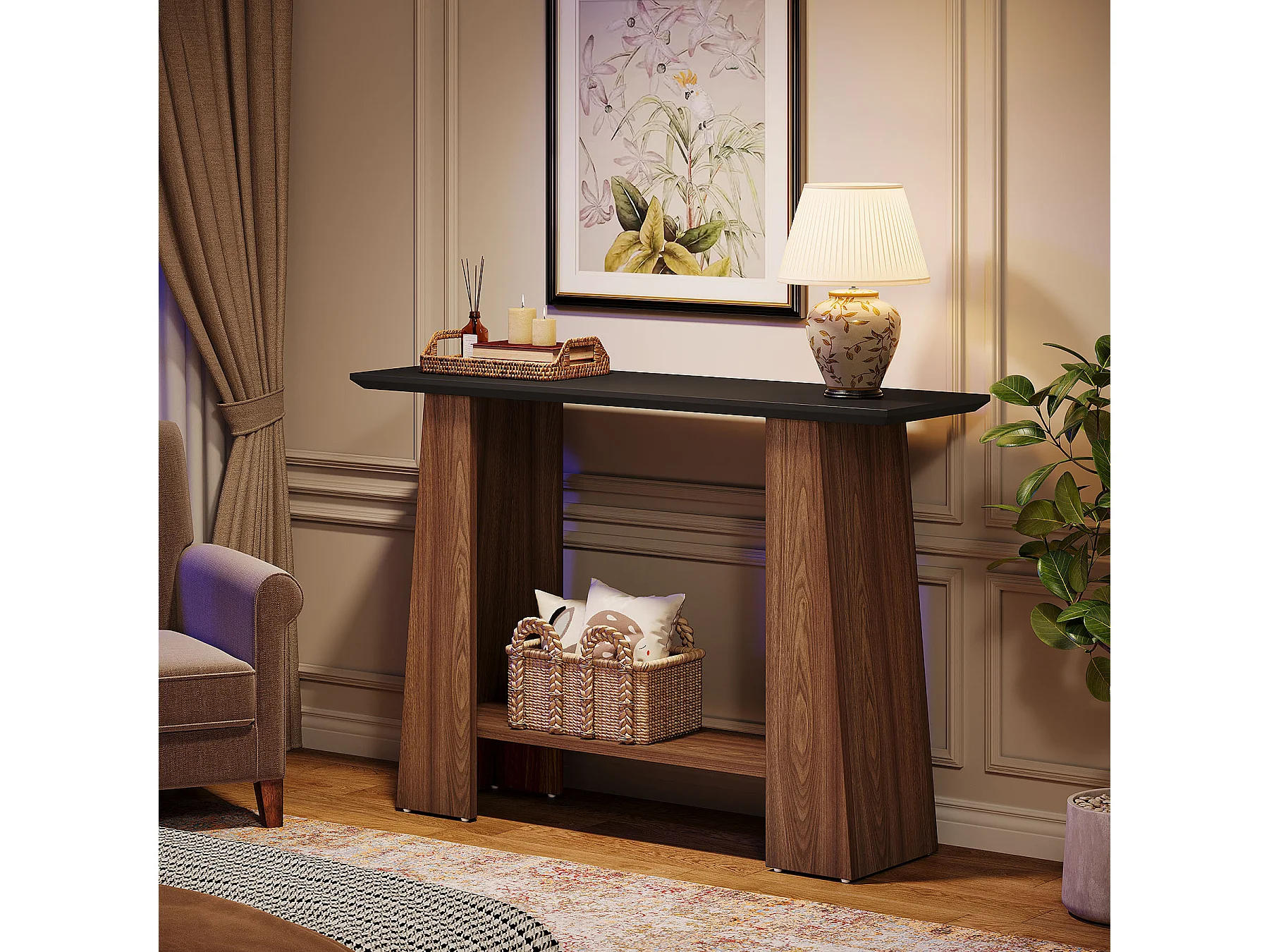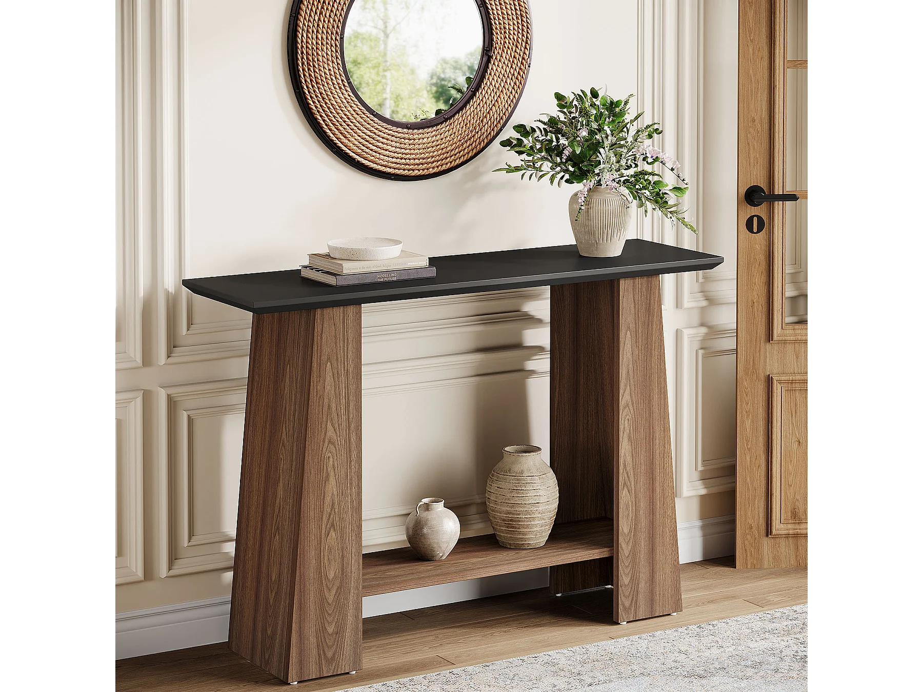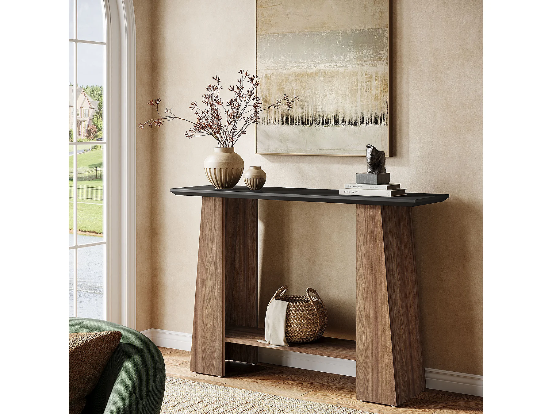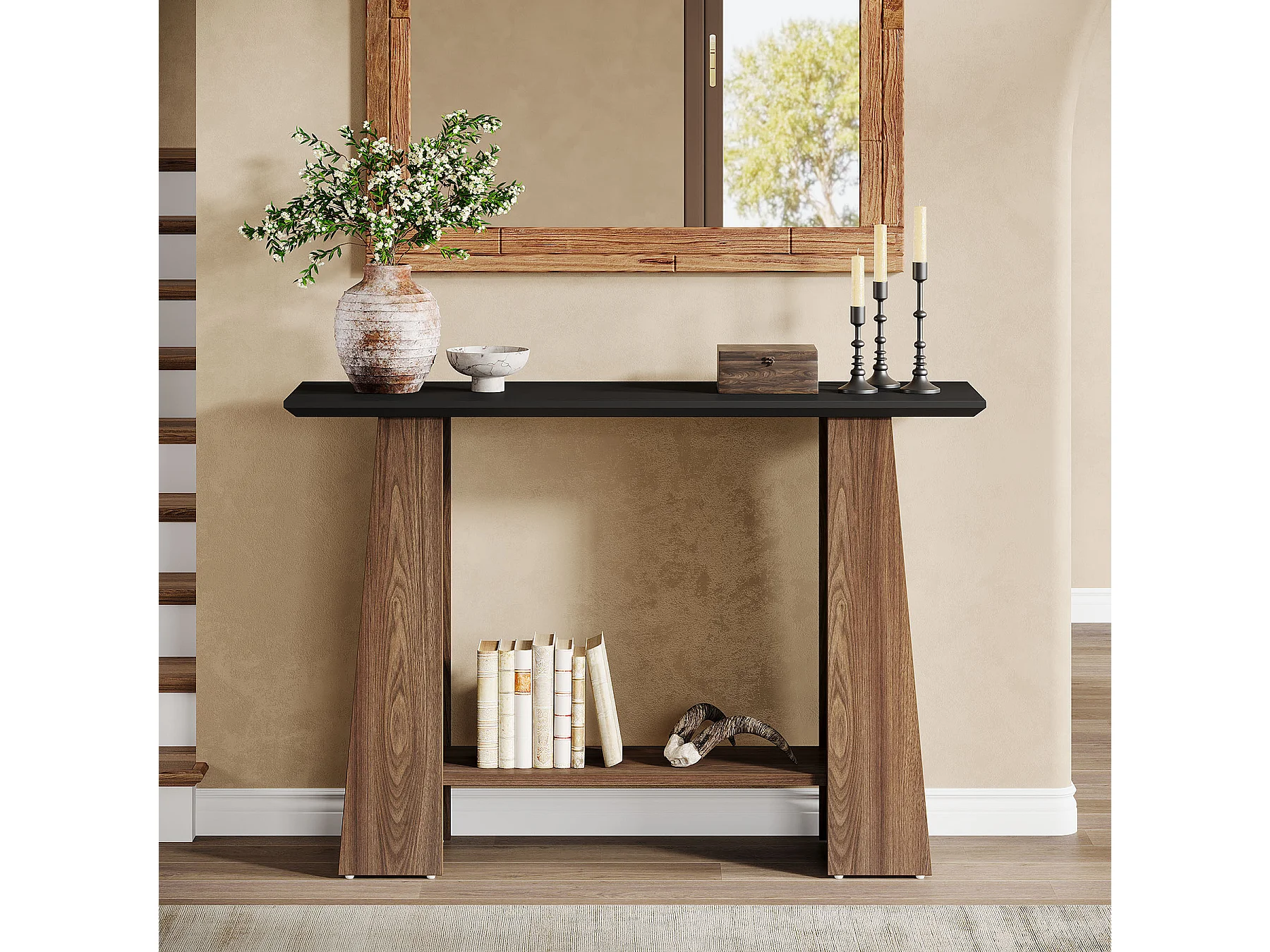 Konsole für die Eingangshalle, 120 cm moderne 2-stufige schmale Holzsofa-Tabelle