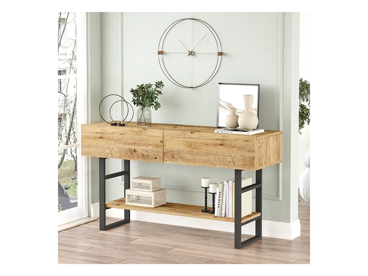 Konsole mit 2 Klapptüren und 1 Regal im Atlantik-Kiefer-Dekor - L138,8 cm