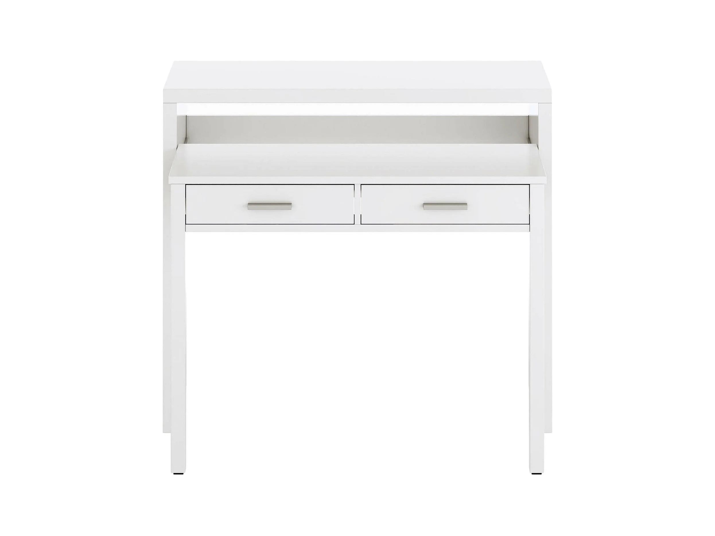 Schreibtisch Damodi, Schreibtisch mit ausziehbarer Platte, PC-Schreibtisch mit 2 Schubladen, 99x36h88 cm, Weiß